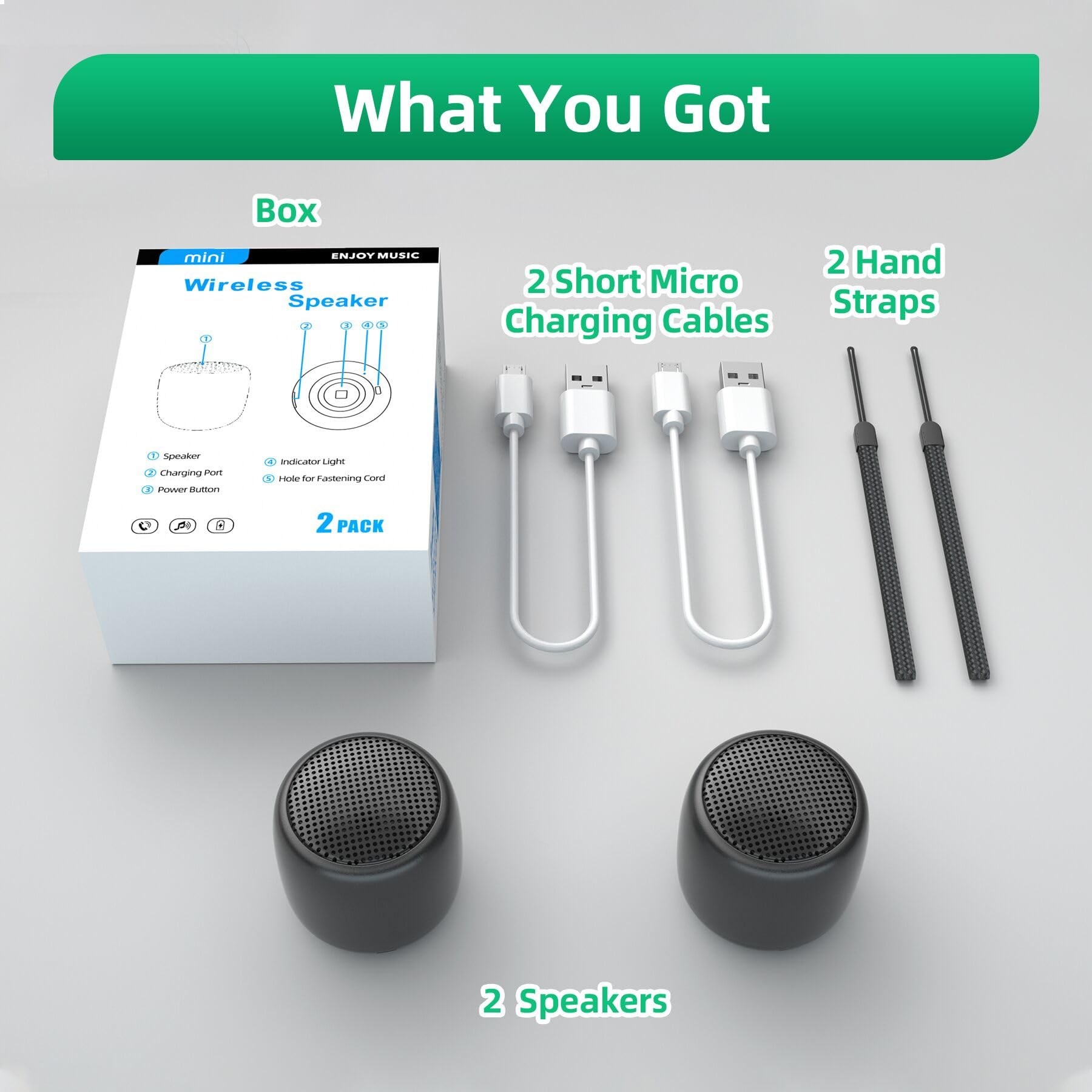 - Birthday Gift – Water resistant protection that defends it against rain, snow, mud. Package comes with 2 pack rechargeable mini wireless speakers, 2 short micro usb charging cables, 2 hand straps. If you're not completely thrilled with our SEVENKA small Bluetooth speakers, just let us know