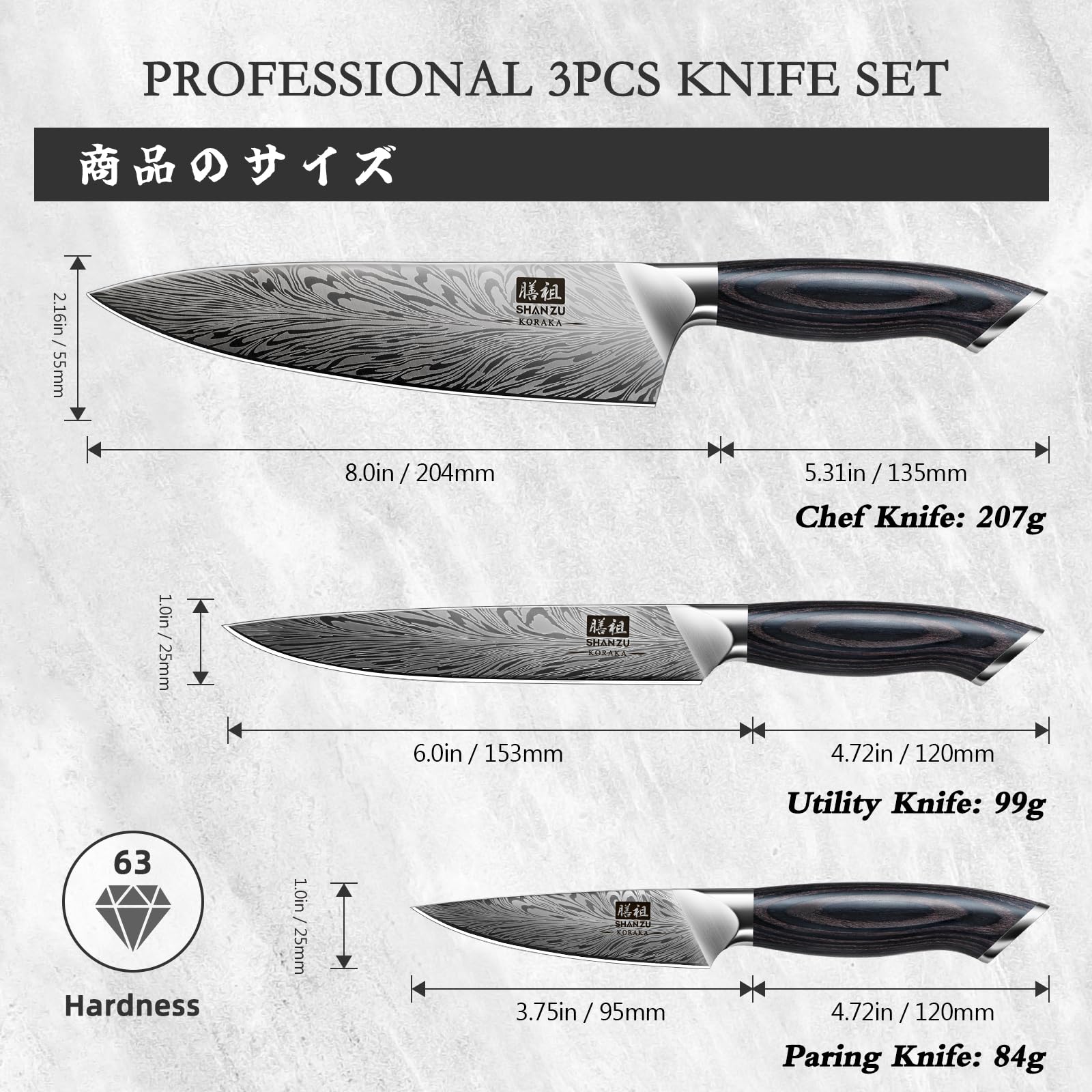 SHAN ZU 3PCS Kitchen Knife Set,Chef Knife Sets in Powder Steel, Ultra Sharp Japanese Knives Set High Carbon Steel Knives Sets, Cooking Knives Set with Ergonomic Pakkawood Handle