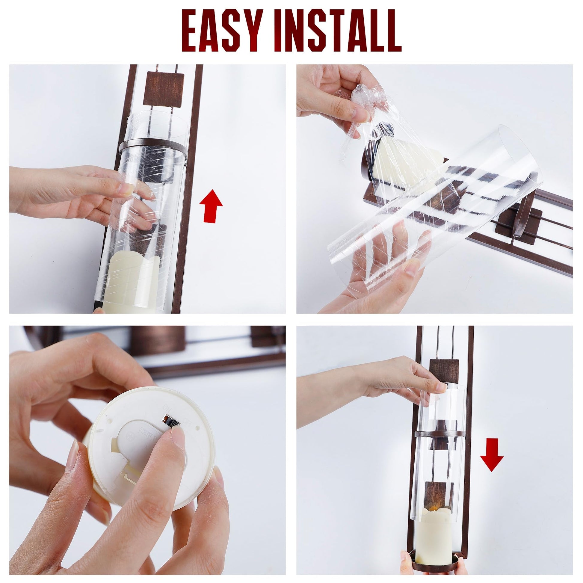 - EASY TO INSTALL- Features lightweight and durable. Mount onto wall from front using screws. Install the battery for the candles. It is easy to install this hanging wall sconce.
