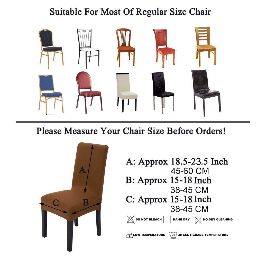 - 【Suitable for Most Chair Sizes】: Our kitchen chair cover is great for ordinary and high-back parson chairs. The height of the back of the chair is: 17-25 inches, seat width: 15-17 inches, seat length: 15-17 inches. Please check the measurement guide in the item picture, and measure the size of your chair to make sure it fits.