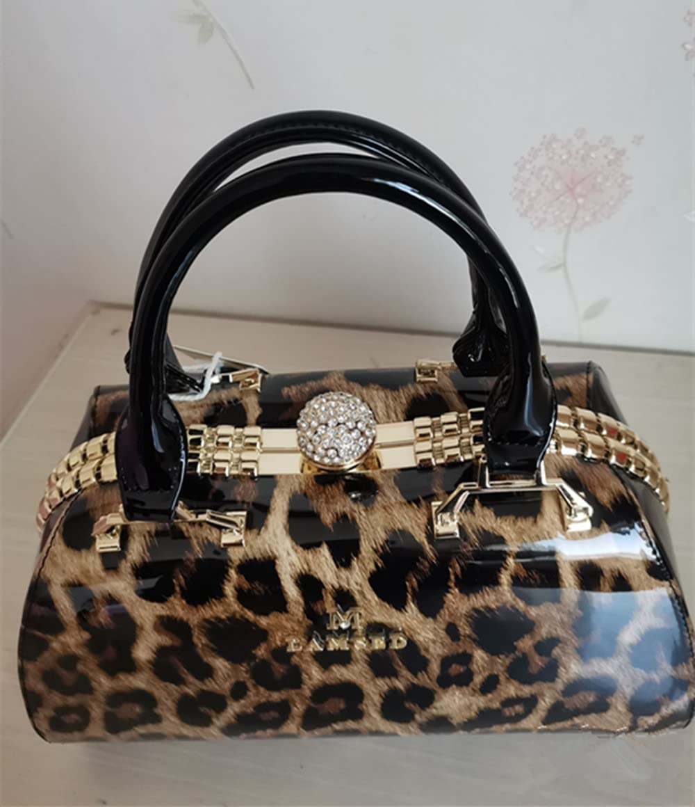Shirt Luv Fashion Leather Women's Top Handle Satchel Crossbody Handbags Crystal Evening Bag Purses Hard Shoulder Bags (Leopard)