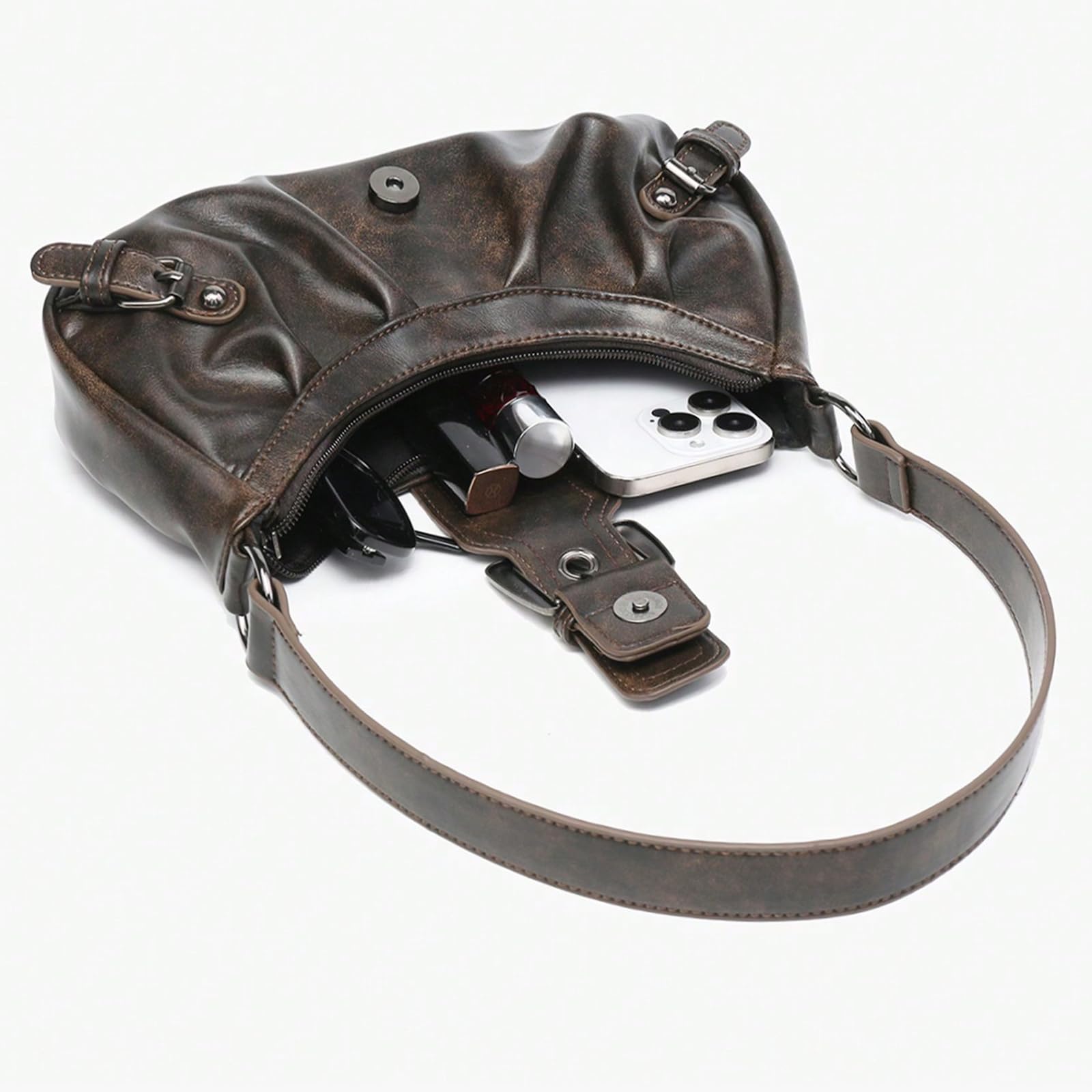 Shoulder Bag for Women Top Handle Handbag Purse Y2K Hobo Clutch Small Punk Purse Trendy, Coffee