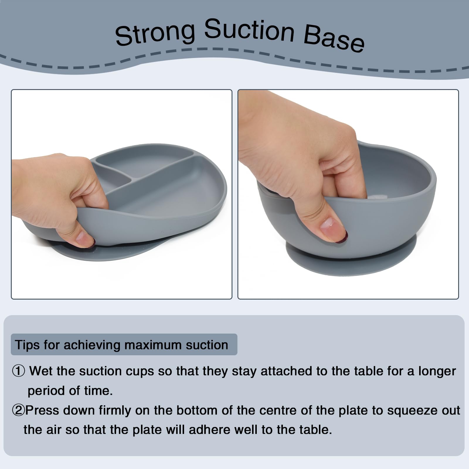- 【Strong Suction Power】Baby plates and bowls can easily attach to any surface, thanks to a larger suction base, which can generate ultimate suction and no longer have food plate overturned or thrown off high chairs!! Let your baby start learning self feeding.