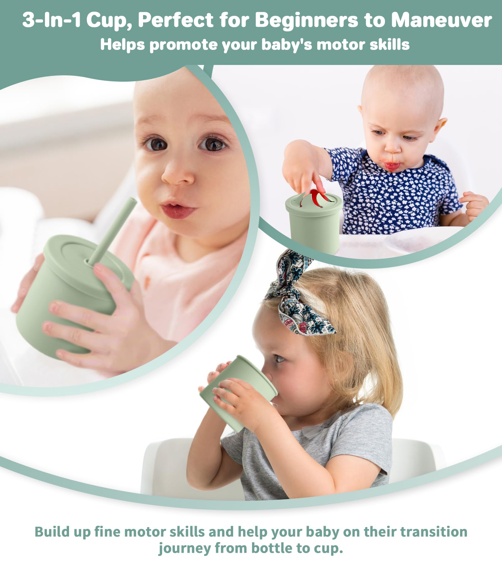 - 【TRAINING CUP & SOFT BIB】-Multi-use training cups triple as toddler drinking cups or baby food storage, Soft silicone protects baby's developing teeth. designed to fit baby’s little hands and mouth. The baby bib is soft and adjustable, and a large pocket for collecting any scattered food or liquid, Which Keeps your little one feeling comfy and clean.