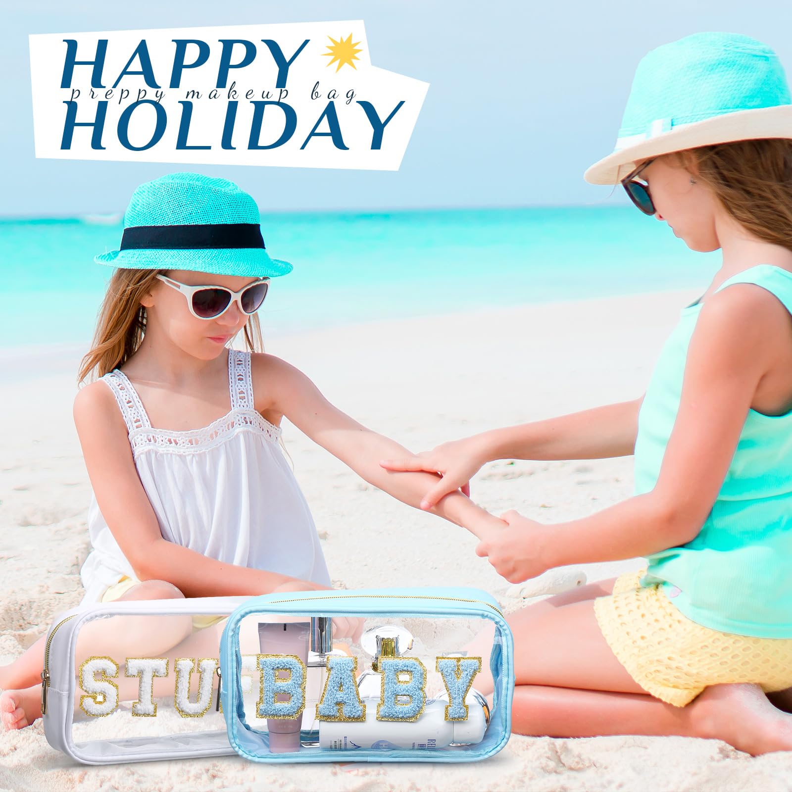 - Stylish and Practical Design: the preppy makeup bag boasts a transparent design that not only looks modern and stylish but also lets you quickly find your items; Plus, it's enhanced by the unique chenille letter patches for an added dose of style