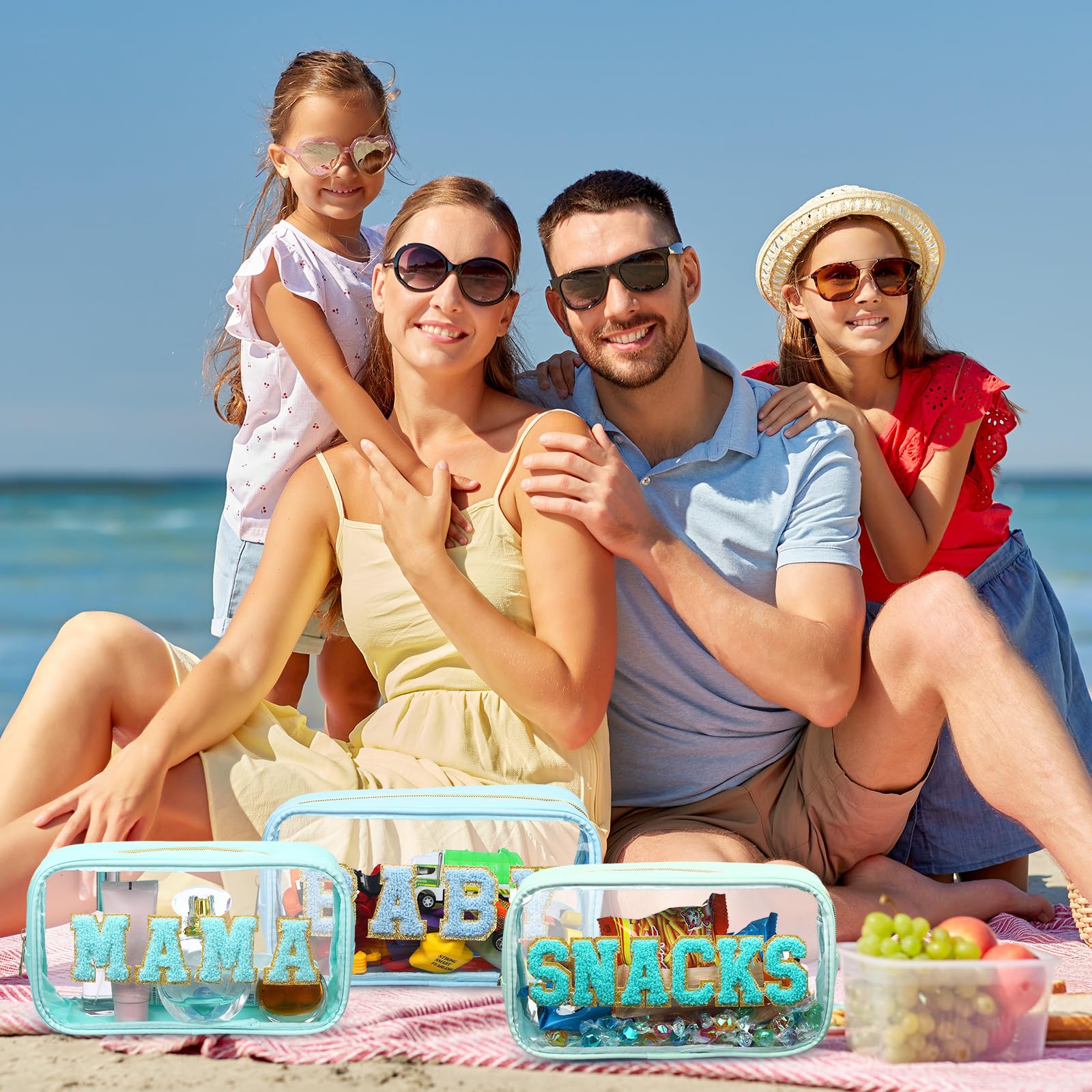 SilTriangle 4 Pcs Mama and Baby Toiletry Bag Clear Chenille Letter Pouch Snacks Makeup Stuff Travel Diaper Bag Preppy Transparent Pouch with Zipper for Women Gift(Fresh Color)