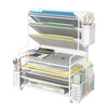 Simple Trending 7 Tier Desk File Organizer, Letter Tray Paper Organizer with Pen Holder and Metal Hanging Basket, Black