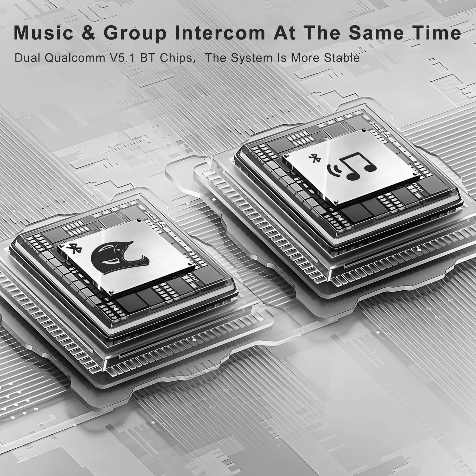 - 【Bluetooth 5.1 Dual Connect 】The SKYVENT Q4 headset intercom is equipped with top-notch Bluetooth 5.1 and a revolutionary dual module, allows you to listen to music or GPS navigation while talking on the Bluetooth headset intercom.