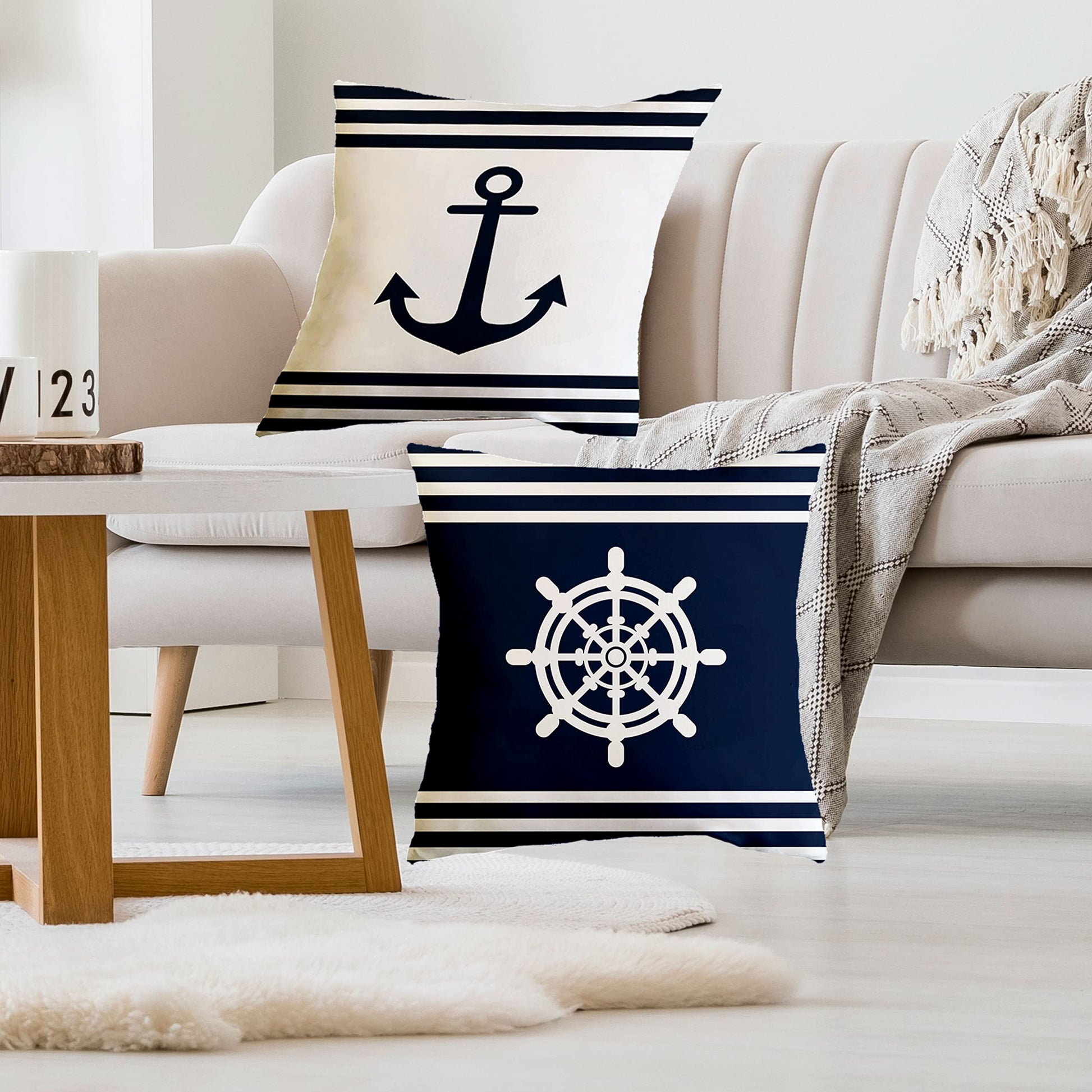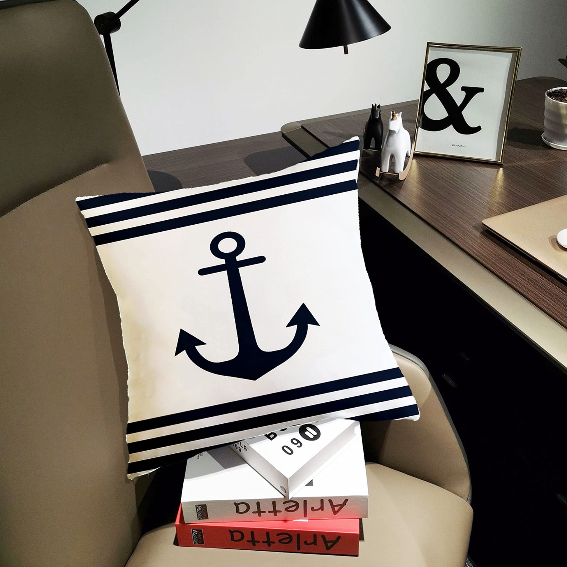 - Throw pillow cover designed and printed with ' Navy Blue Ocean Boat Ancho ' make it Delicate and beautiful, simple and generous. The invisible zipper design is easy to install/unload and no affect to appearance beauty, can be used as Home Decoration in living room/bedroom/garden/office, also could be gifts to friends or family.