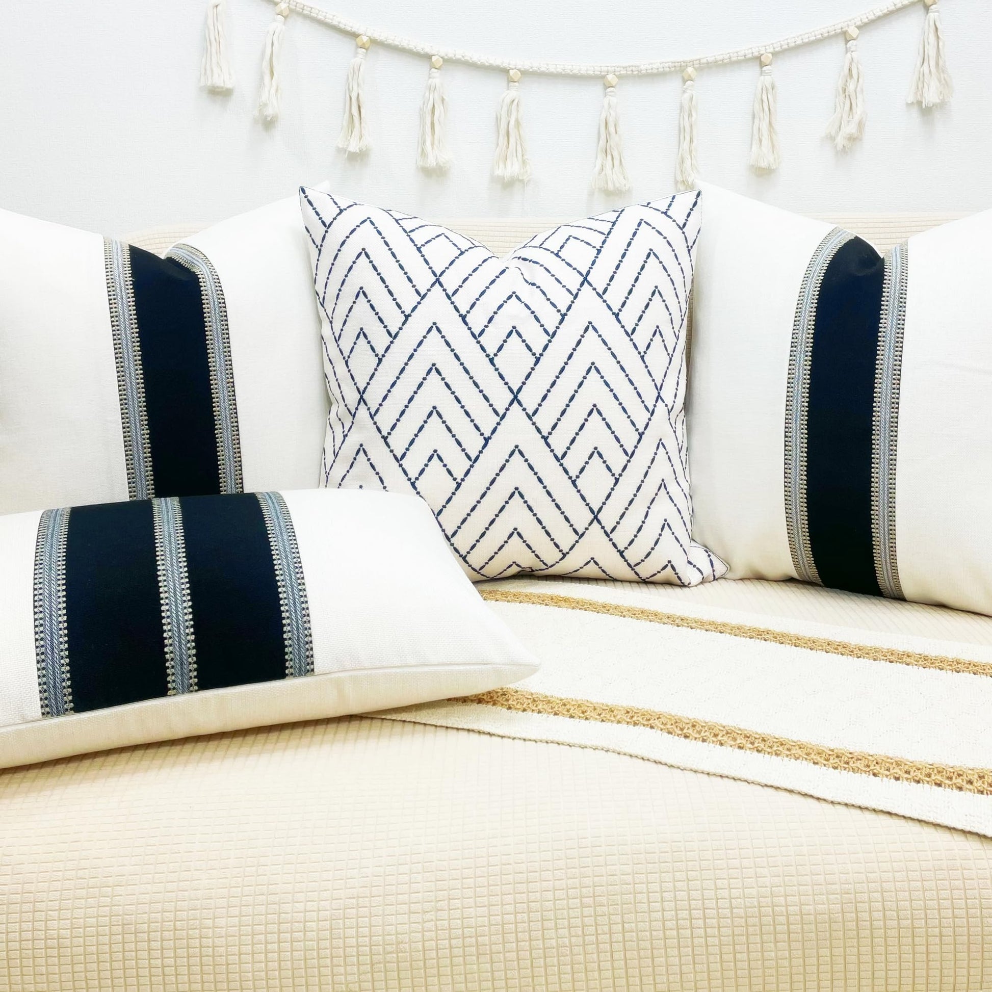 - This is striped patchwork pillow cover, not printed, patchwork pattern only on the front side, the background is off white