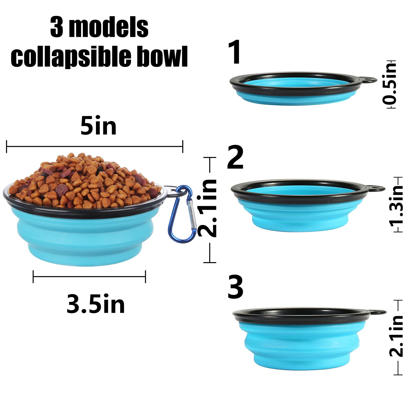 • SUITABLE SIZE: 5*3.5*2.1inch(expanded), 0.5inch height(folded), each bowl holds up to 12 oz of water or 1.5 cups of pet food or water, small and lightweight for all small to medium dogs,may not suitable for large breed dogs.