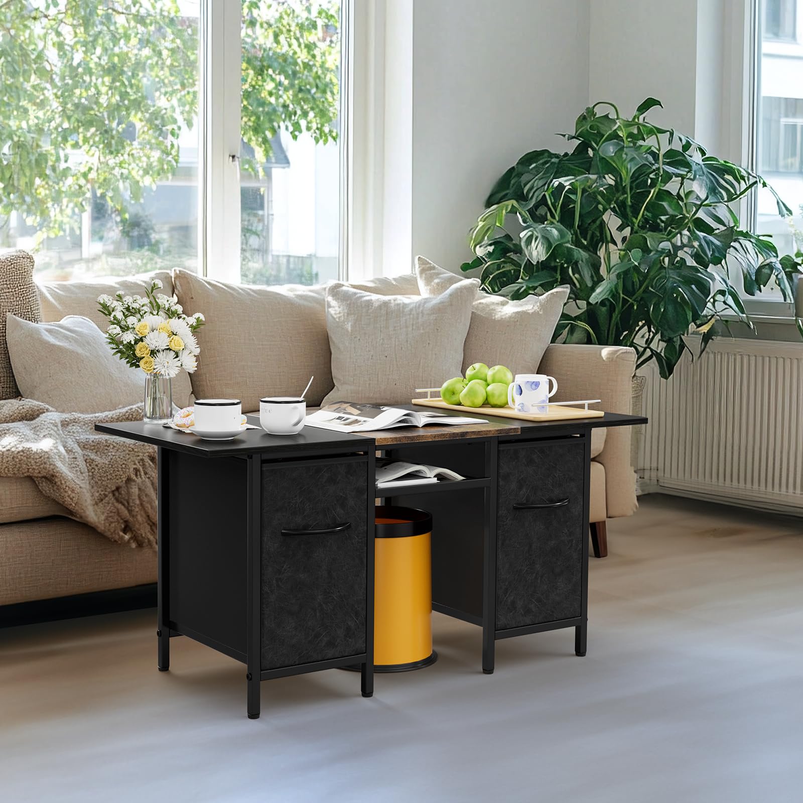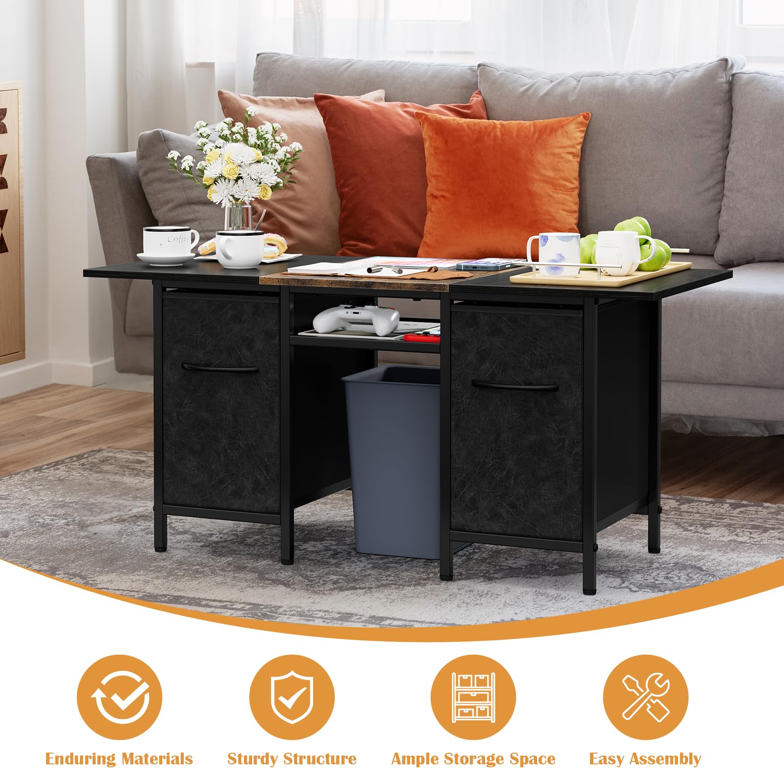 Small Coffee Tables for Living Room 35'' Rectangle Coffee Table with 2 Fabric Storage Drawers and Metal Shelf, Wood Center Table for Small Spaces, Home Office, Black & Rustic Brown