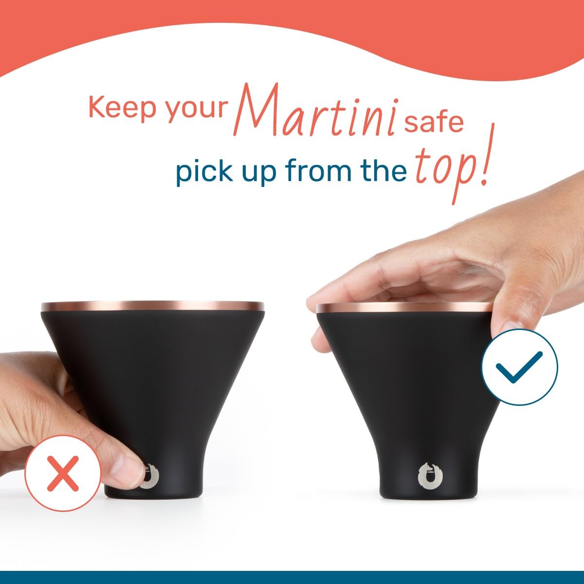 - Innovative Design By SNOWFOX: As the originators of vacuum-insulated double wall steel glasses made specifically for martinis, we’re delighted by their growing popularity. If you know martinis, you know they’re meant to be enjoyed at the iciest temperatures possible. Glass is not an ideal choice—it warms up contents by a degree a minute. Take your time drinking from our sleek glasses, as they keep cocktails at below-freezing temps until the very last sip. Makes a celebrated gift!