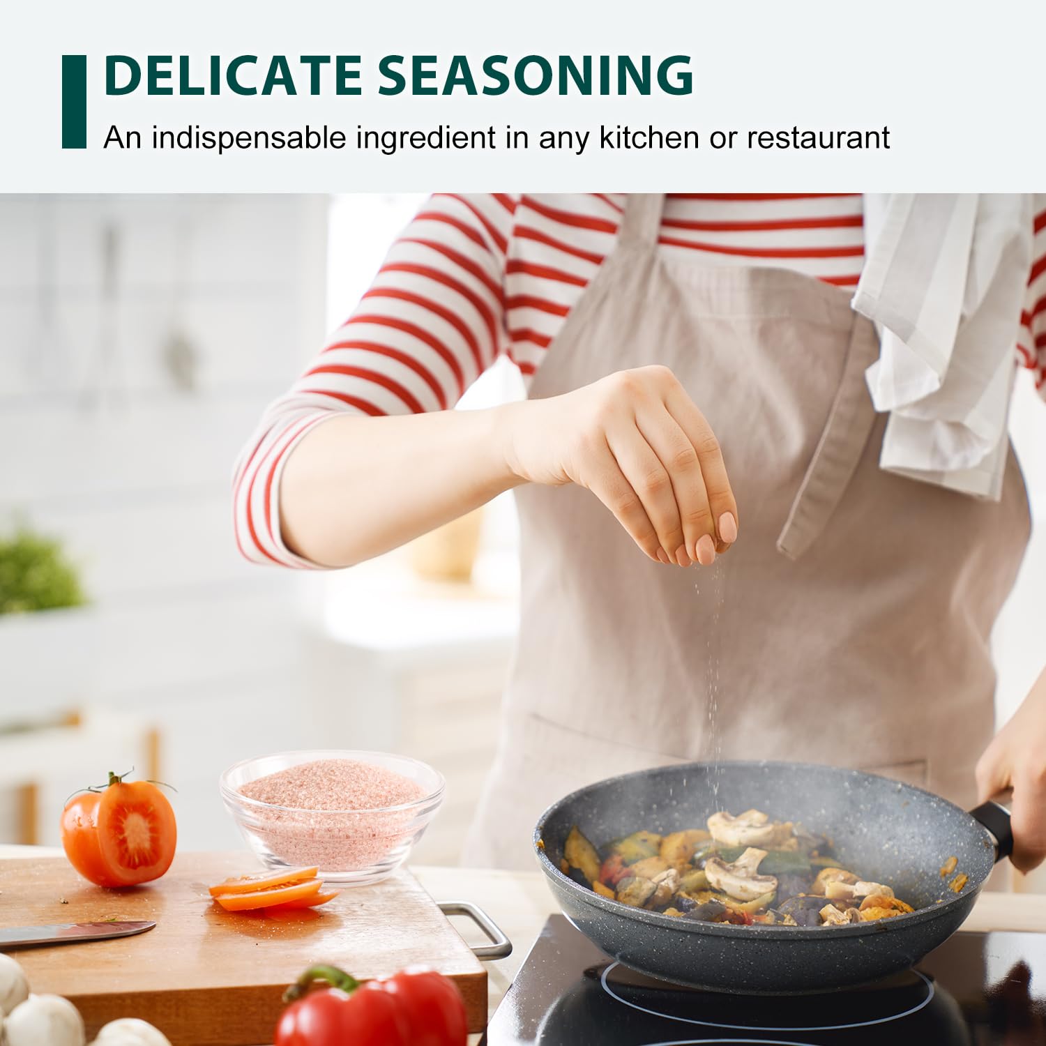 - Versatile Usage: Soeos Himalayan Fine Pink Salt can be used in a wide range of culinary applications. It adds depth and complexity to meats, vegetables, salads, and various dishes. Its exquisite flavor and texture make it a versatile and gourmet choice for both cooking and finishing your meals.