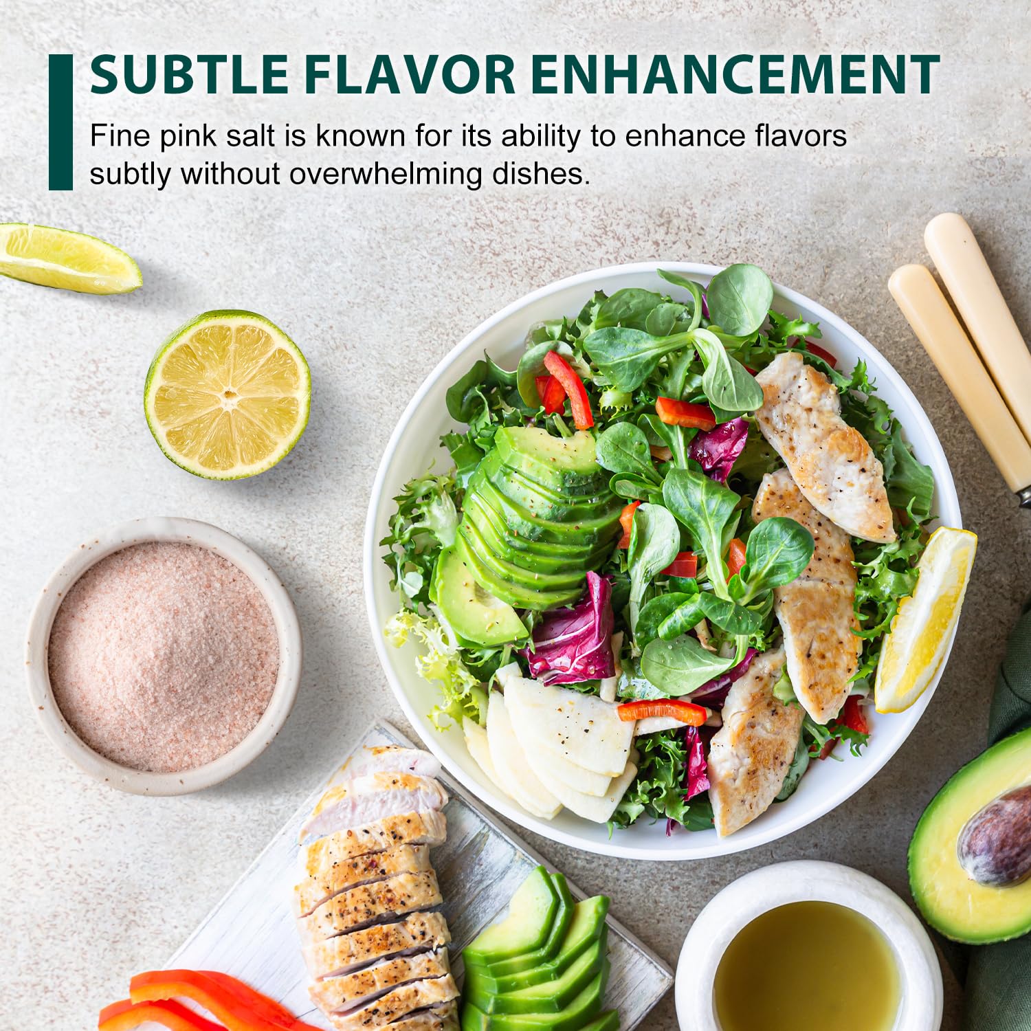 - Experience culinary perfection with our Fine Pink Himalayan Salt. Mined from ancient deposits in the Himalayan mountains, each delicate crystal carries a subtle pink hue, infusing your dishes with a rich, mineral-enhanced flavor that elevates every bite.