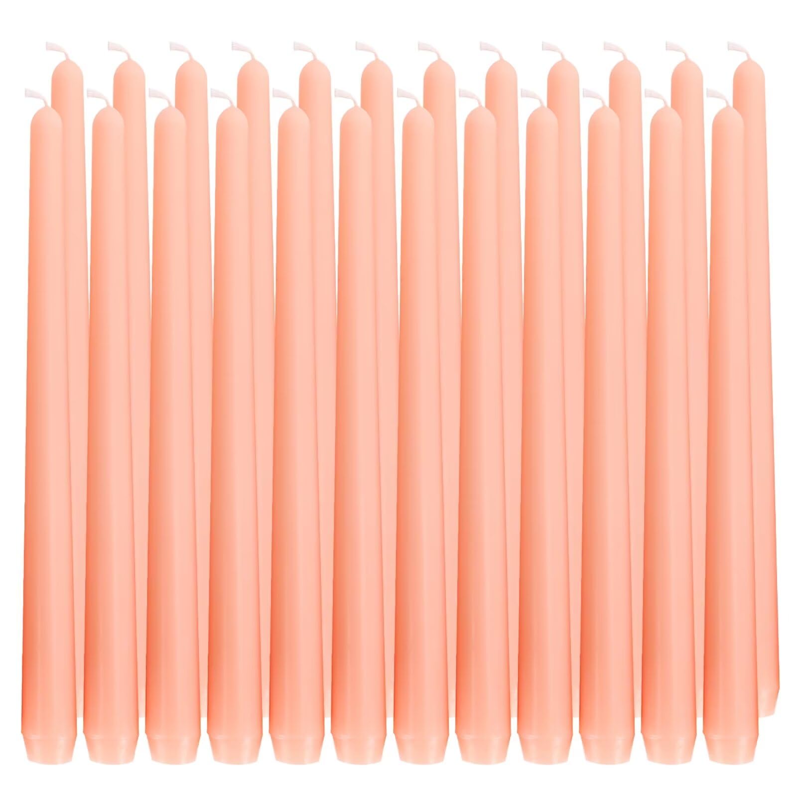 SOFT BREEZE 24 Pack Unscented Tall Taper Candles - 4/5X10 Inch, Dripless, Unscented Dinner Candle - 10 Hours Burn Time -Pink Colors
