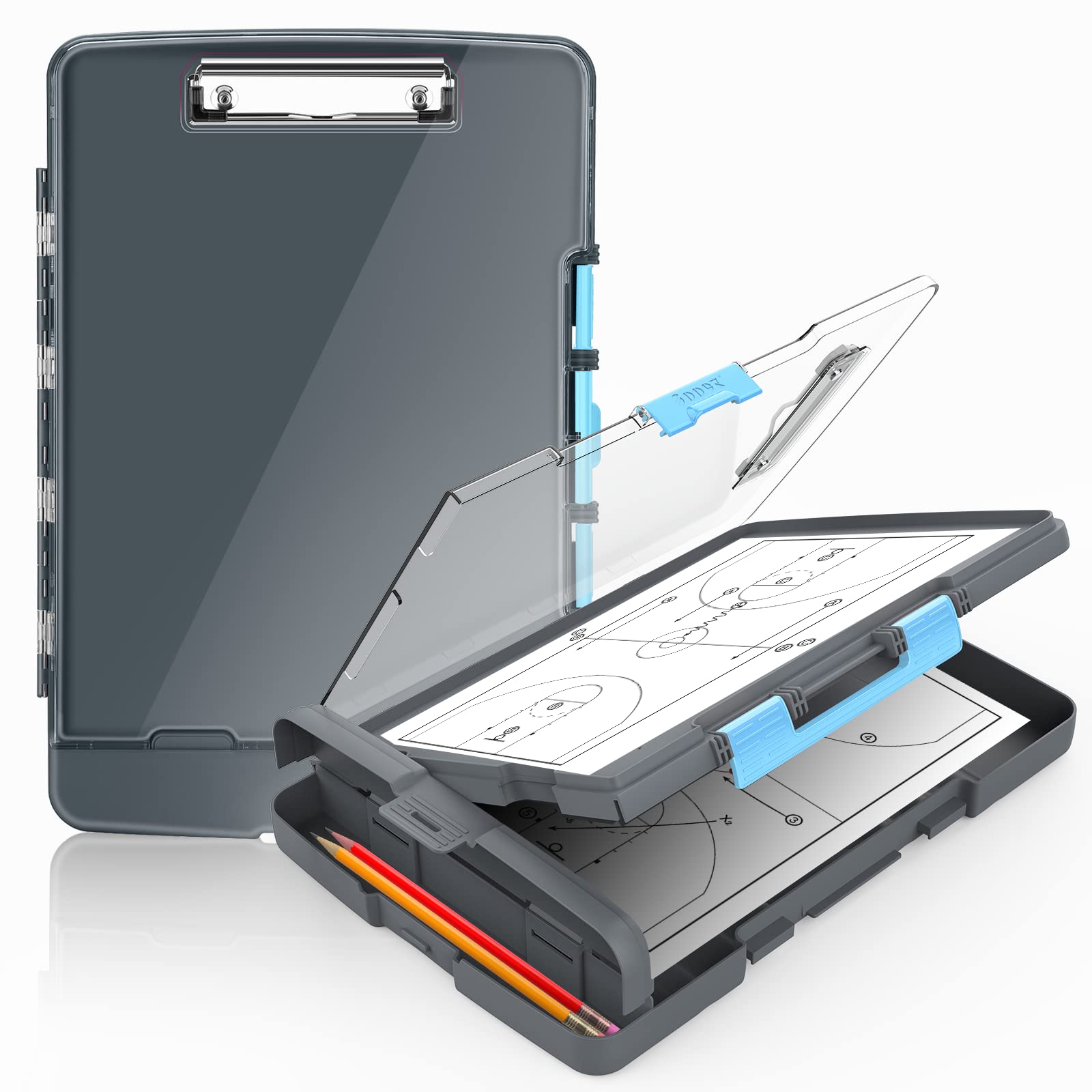 Sooez Original Clipboard with 2 Storage & Pen Holder, Heavy Duty Clip Boards 8.5x11 with Dual Storage, Clearview Dry Erase Coach Clipboard with Real Hinge, High Capacity, School & Office Supplies