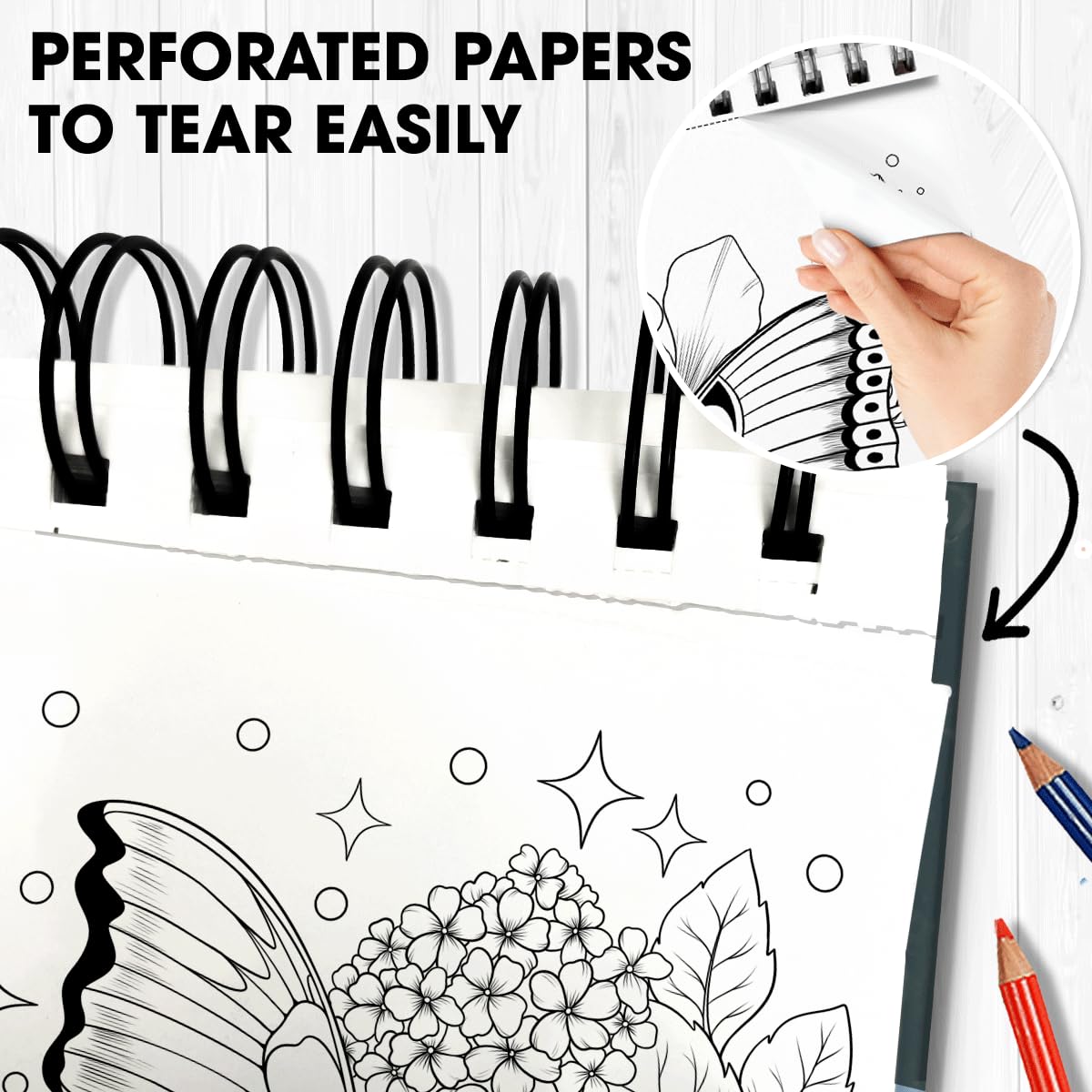 - FIRMLY SPIRAL BINDING - The spiral bindings with good materials and double wire ensures easy page flipping, enabling you to work comfortably on each sheet. Besides, the spiral design allows pages to lay flat, making it easy to color without keeping or compressing the coloring page.