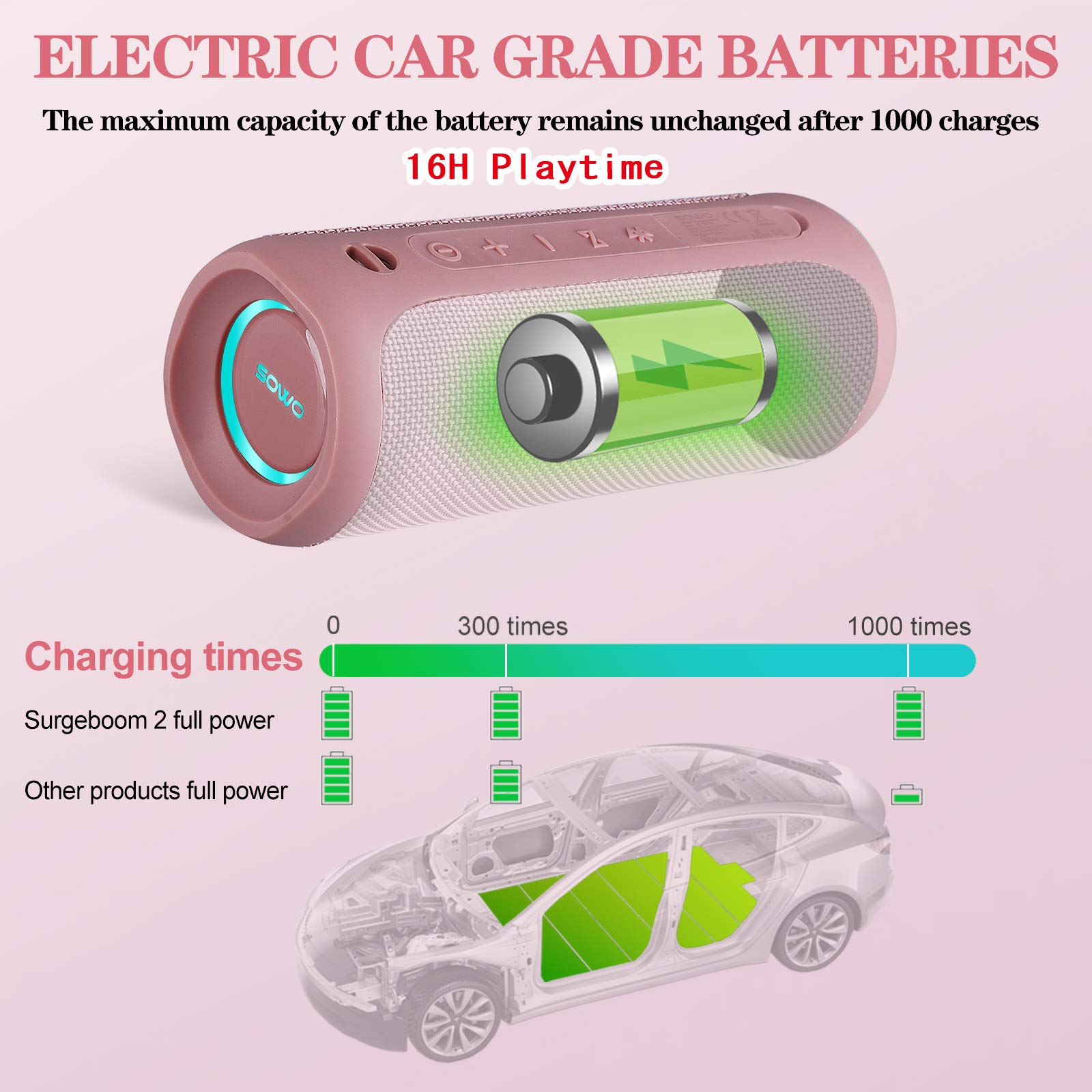- 16H LONGER STREAMING: SOWO Bluetooth speakers portable wireless built with 5000 mAh super electric vehicle battery, can be recharged more than thousand times, and the maximum actual capacity will not be reduced, Let's enjoy music day to night