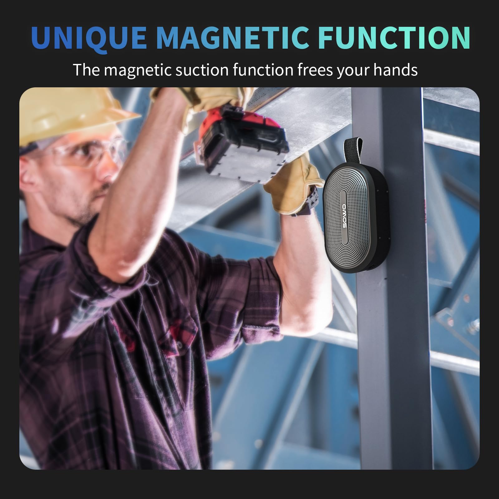 - Magnetic & Clip on Bluetooth Speaker: The Portable Bluetooth Speaker is compact enough to be operated with one hand and easy to carry, You can enjoy music while hiking, cycling, playing golf outdoors or yoga, cooking,kitchen,watching mobile videos indoors
