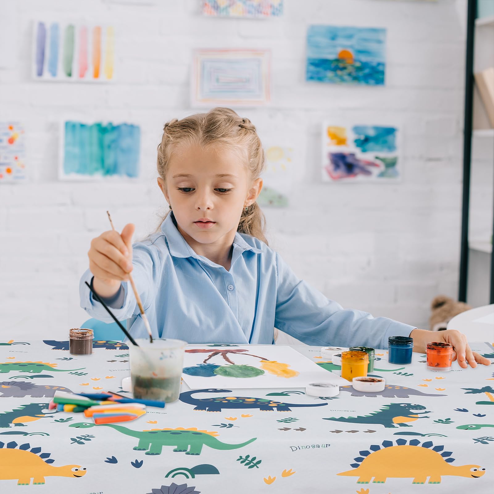 - Waterproof Stain Resistant Splash Mess Mat: Our kids dinosaur splat mat are waterproof and easy to wipe clean messy food stains, splashes, and spills. It protects floor, tabletop and carpet against paint, water, dust and dirt, great for under toddler table, art easel or wherever mess happens.