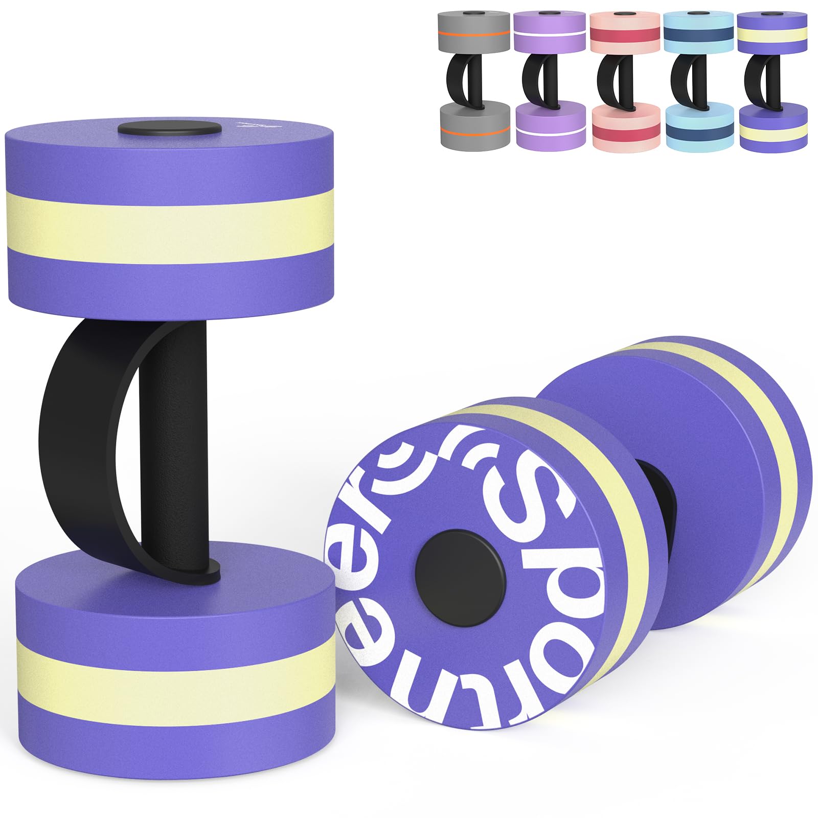 Sportneer Water Weights Aquatic Exercise Dumbbells Water Dumbbell Aerobics Workouts Set of 2 EVA Foam Pool Weights Dumbbells Set Aqua Fitness Barbells Equipment for Water Aerobics Weight Loss