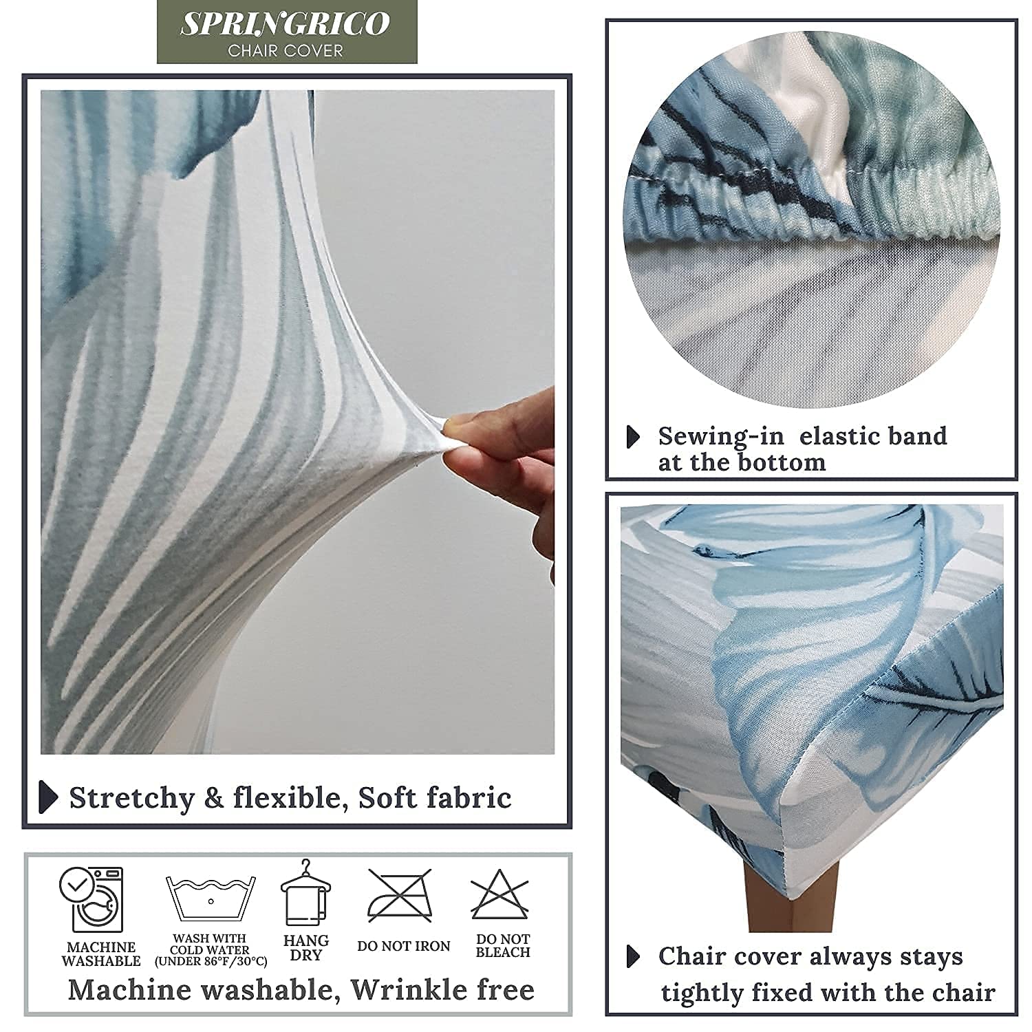 - It’s As If You Just Refurbished! Springrico chair cover is a must-have accessory for homes with kids & pets. These protective covers protect dining chairs from stains, food spill or pet hair. These premium chair slipcovers are an perfect budget-friendly solution to refresh any worn upholstery or chairs with aged surface. Instantly transform them from uncomfortable & unsightly into comforting and welcoming chairs where your guests would love to “take a seat”.