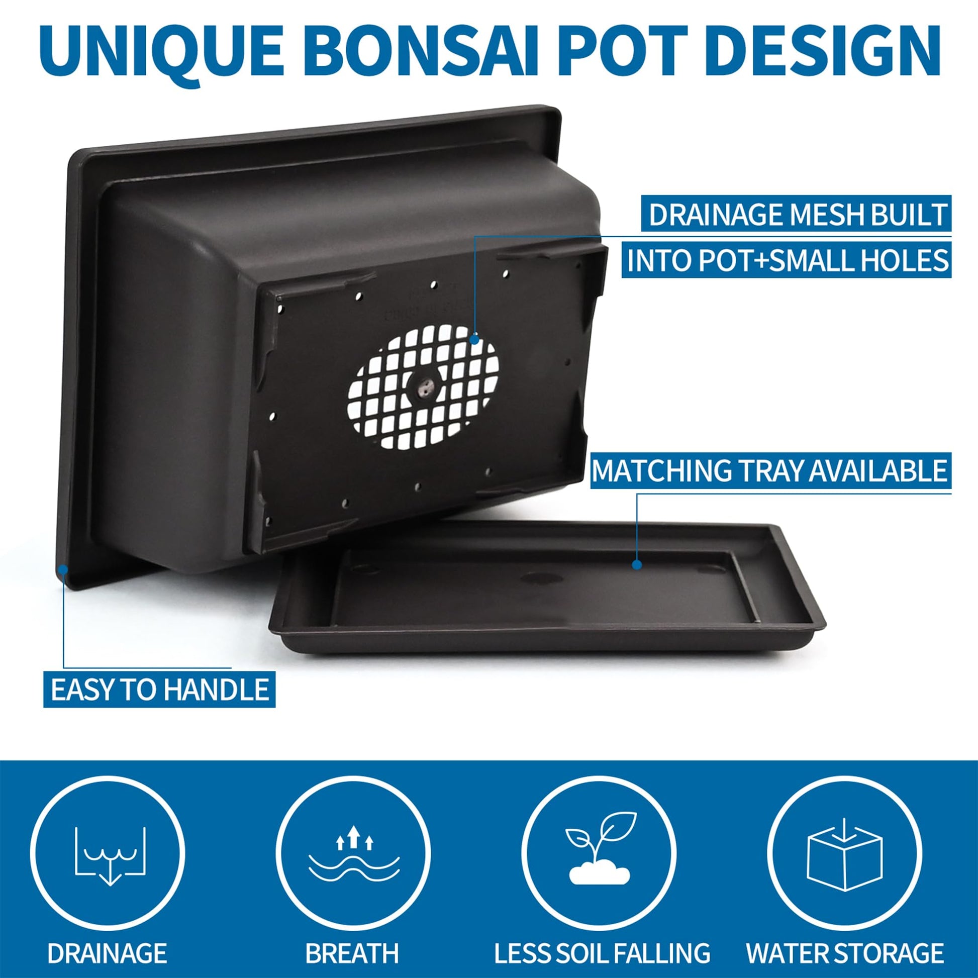 - KIT INCLUDES: 5 types of bonsai tree seeds, 5 plastic pots with drip trays, 5 soil discs, 5 plastic writable plant markers, 1 bonsai pruner, a mini tweezer, a small water bottle and a gardening guide.