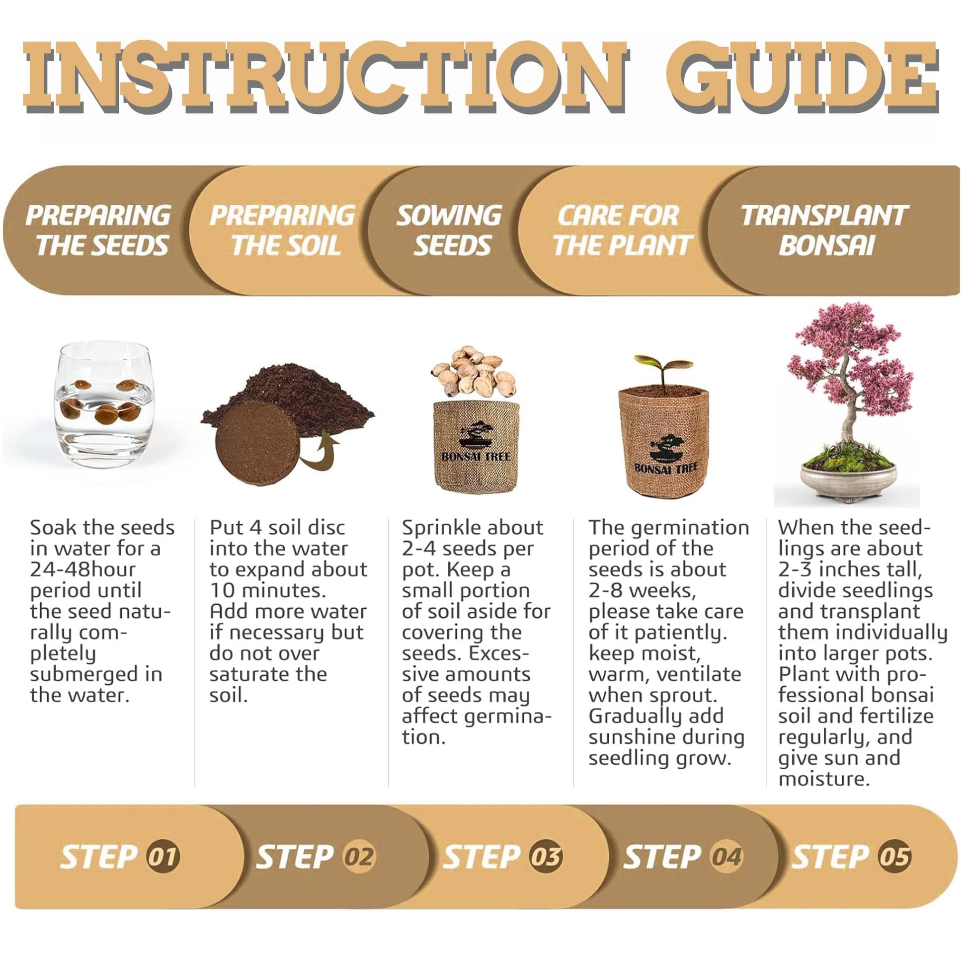- GROWING INTO 5 BONSAI TREES: Sproutix provides with seeds that will grow Acacia, Wisteria, Judas tree, Red Maple, and Black Pine. Seed 2 to 4 seeds in each pot as too many or too few can affect its germination. Not all seeds will sprout and Bonsai seeds usually take longer time for germination(4-8 weeks), so please be patient