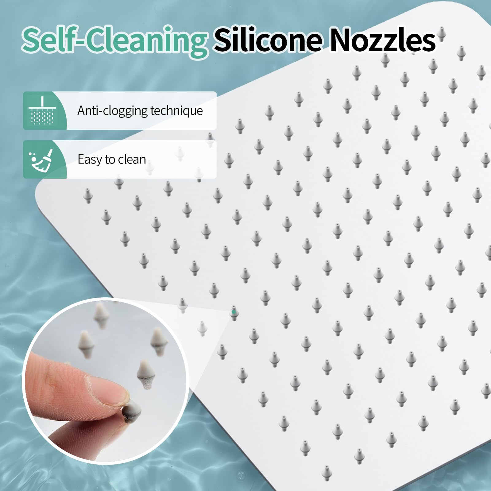 - SELF-CLEANNING ANTI-CLOGGING: Worry-free showers with the advanced silicone nozzles of this showerhead. Designed to prevent clogging and ensure a strong, consistent water flow. Each shower head undergoes rigorous water blockage testing at the factory.Even as mineral buildup occurs, a simple touch cleans the nozzles, maintaining a smooth rainfall experience in your bathroom.