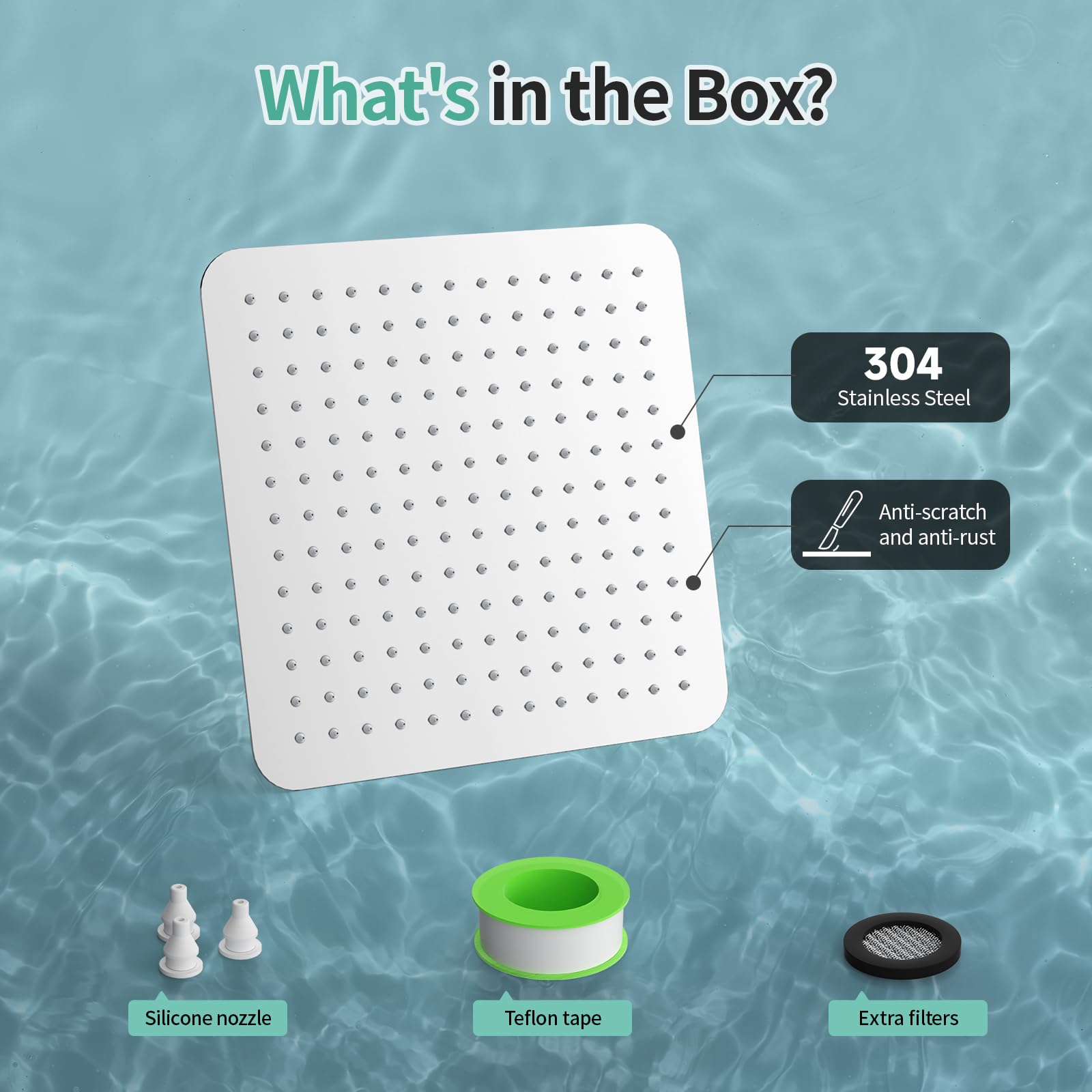 - 304 STAINLESS STEEL SHOWERHEAD: This luxurious bathroom square shower head features an integrated pressed panel design that minimizes seam exposure to air, significantly enhancing both durability and aesthetics while preventing rust, even effectively prevents fingerprints, keeping the surface bright and clean over time. It also addresses the issue of wear common with ordinary shower heads, extending the product’s lifespan and offering excellent value for money.