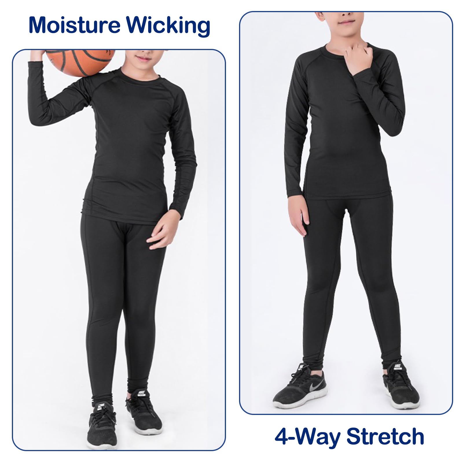 - Moisture Wicking - Moisture wicking boys leggings and boys compression shirt keep you dry and cool.These long sleeve workout top set ensure a dry feel and maintain blood flow during intense activity. Quick-dry and breathable fabric boys basketball compression leggings