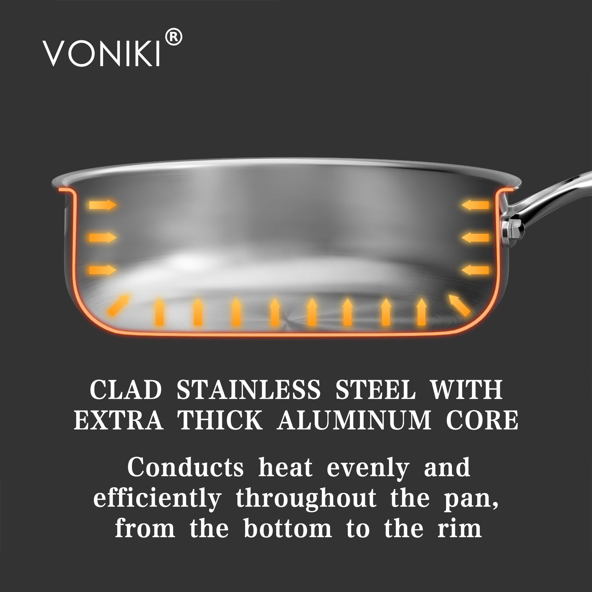Stainless Steel Cookware Set - VONIKI Tri-ply Stainless Pots And Pans Set with Steamer Basket, Non Toxic Induction Cookware, Kitchen Cookware Sets PFOA & PTFE Free, Dishwasher and Oven Safe