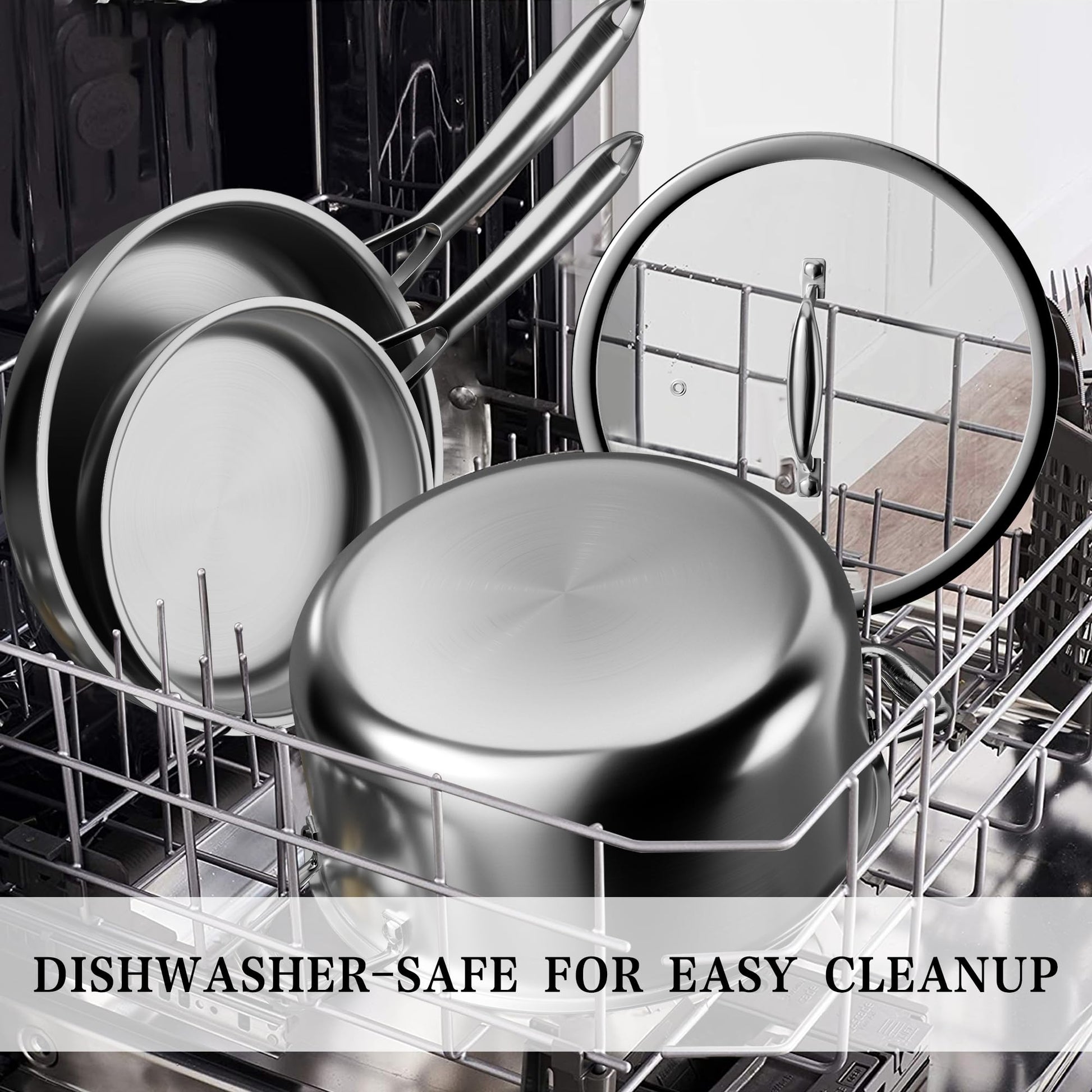 - Suitable for All Stoves: Works on all stovetops, including induction. The high-quality stainless steel and the aluminum core make it dishwasher-safe and oven-safe up to 550°F