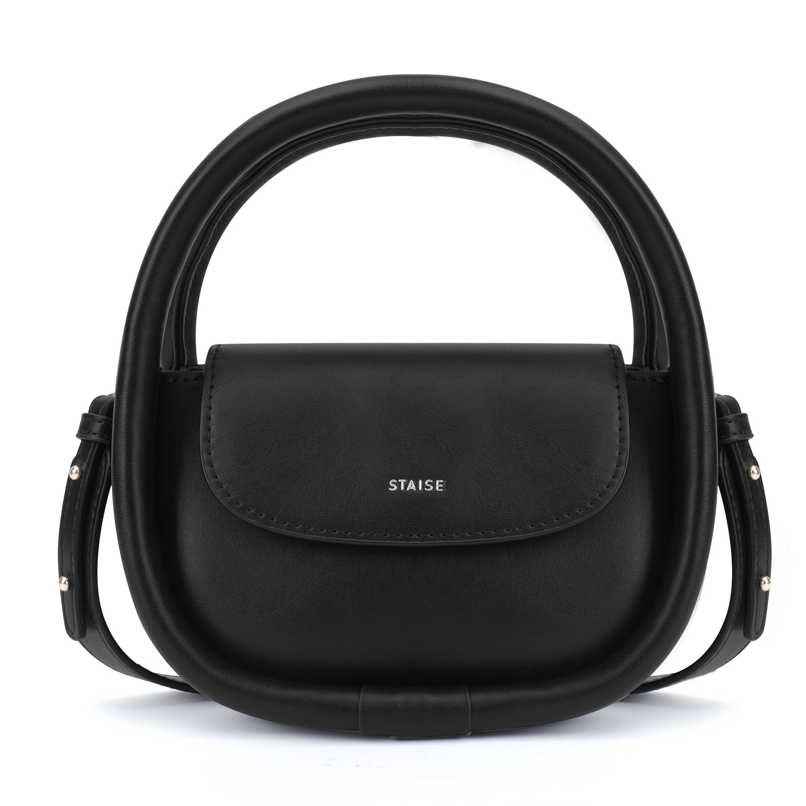 STAISE Designer Top Handle Shoulder Bags for Women, Trendy Mini Crossbody Purses, Women’s Leather Handbags with Straps (Black)