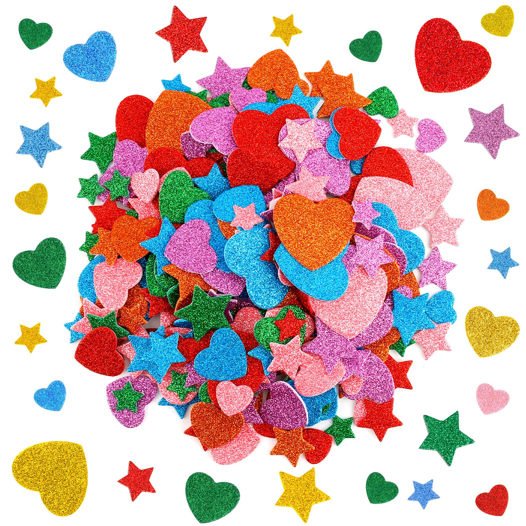 Star Stickers, 100 PCS 4th of July Foam Stickers, Patriotic Sticker for Kids Crafts, Self Adhesive Glitter Star Shaped Red Blue and Silver Foam Sticker for Independence Day Arts Crafts DIY Supplies Sp