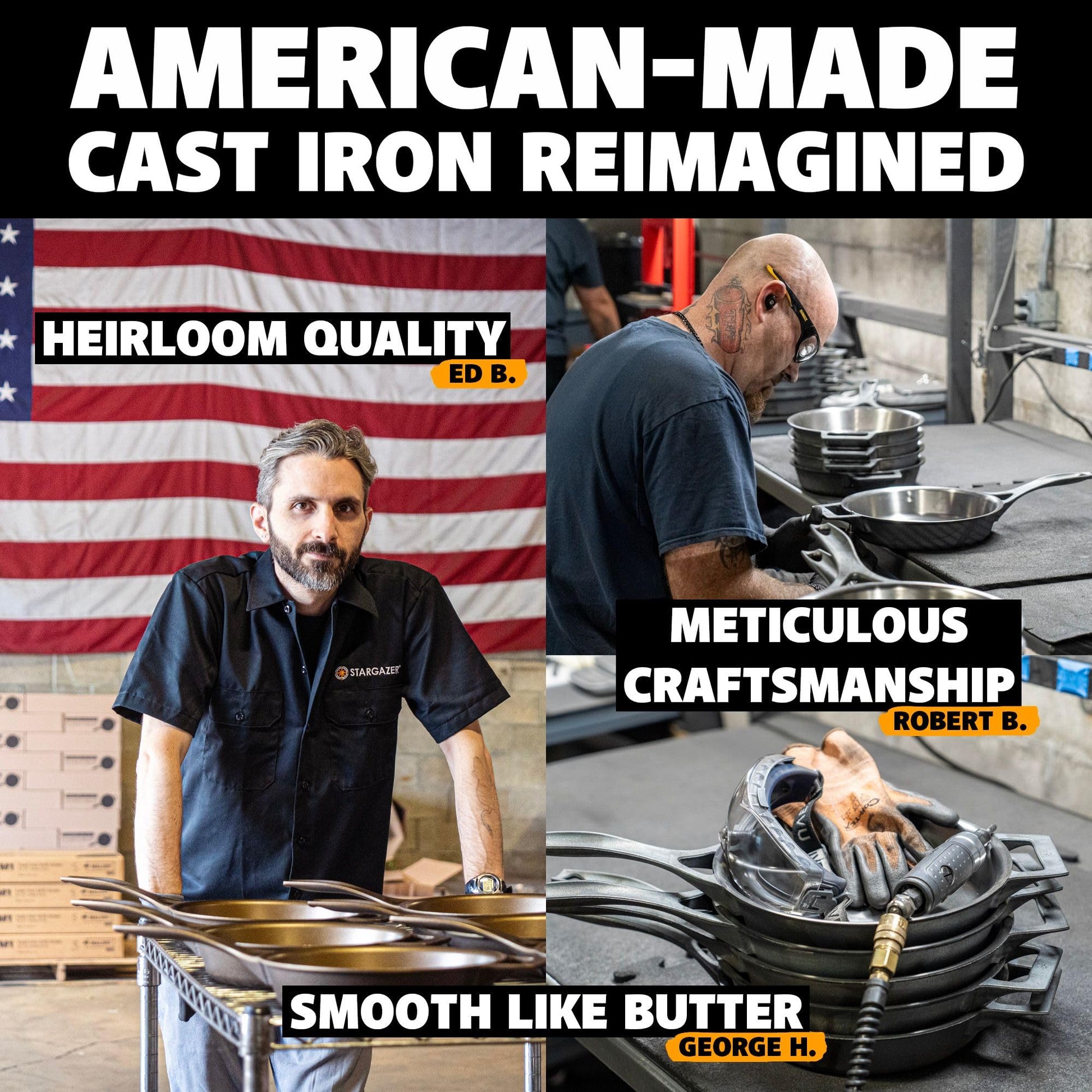 Stargazer 12-Inch Cast Iron Skillet | Made in USA, Seasoned, Premium Frying Pan for Grilling, Searing, Baking & More – Durable Cast Iron with Smooth Cooking Surface