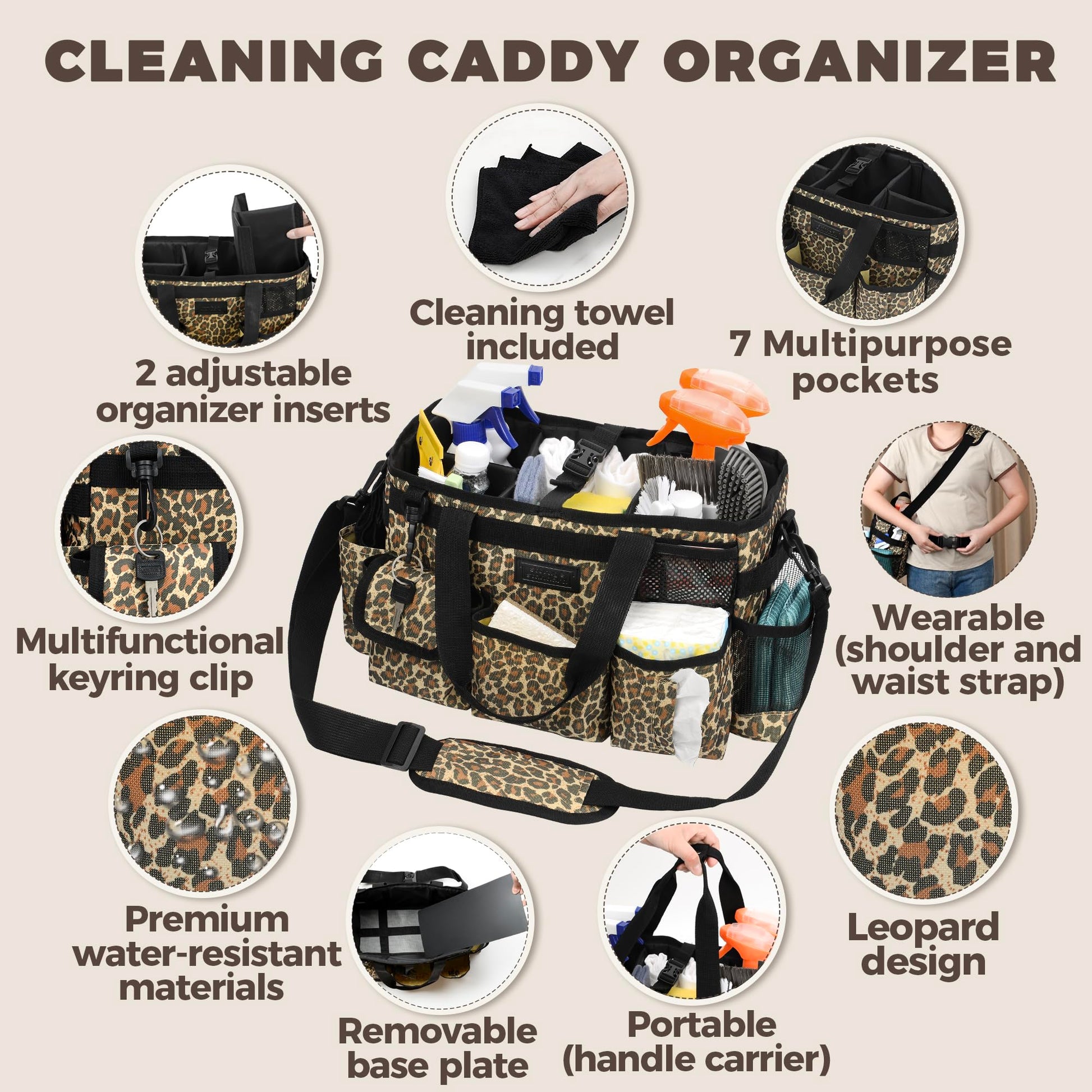 - A Housekeeper's Essential: Lessen the hassle of cleaning with our leopard print cleaning supplies organizer! Whether you're a cleaner or housekeeper, click 'Add to Cart' now to make your life easier!