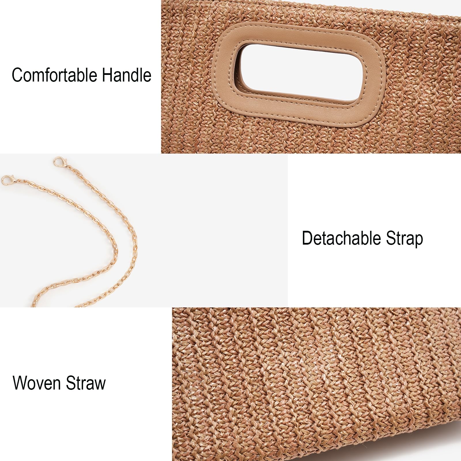 - Compact with Roomy Space: This straw clutch handbag has a main compartment, There are two magnetic buckles closer to keep your items safe. The straw purse is not bulk for beach weddings or parties. But have enough space for carry-on items like phones, wallets, makeup, keys, etc.