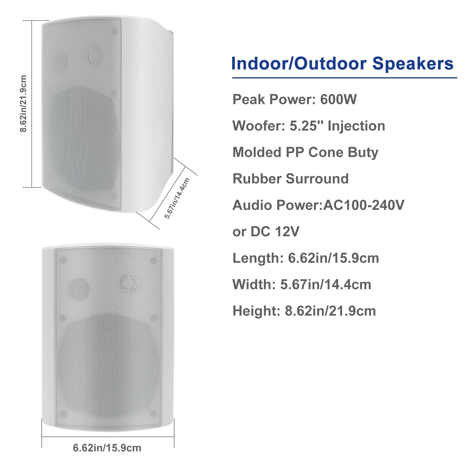 STUDIOFINIX 5.25 Inch 600W Passive Wall Mount Speakers Weather Resistant Indoor Outdoor Speakers for Patio Garage Home,2 Pairs (White)