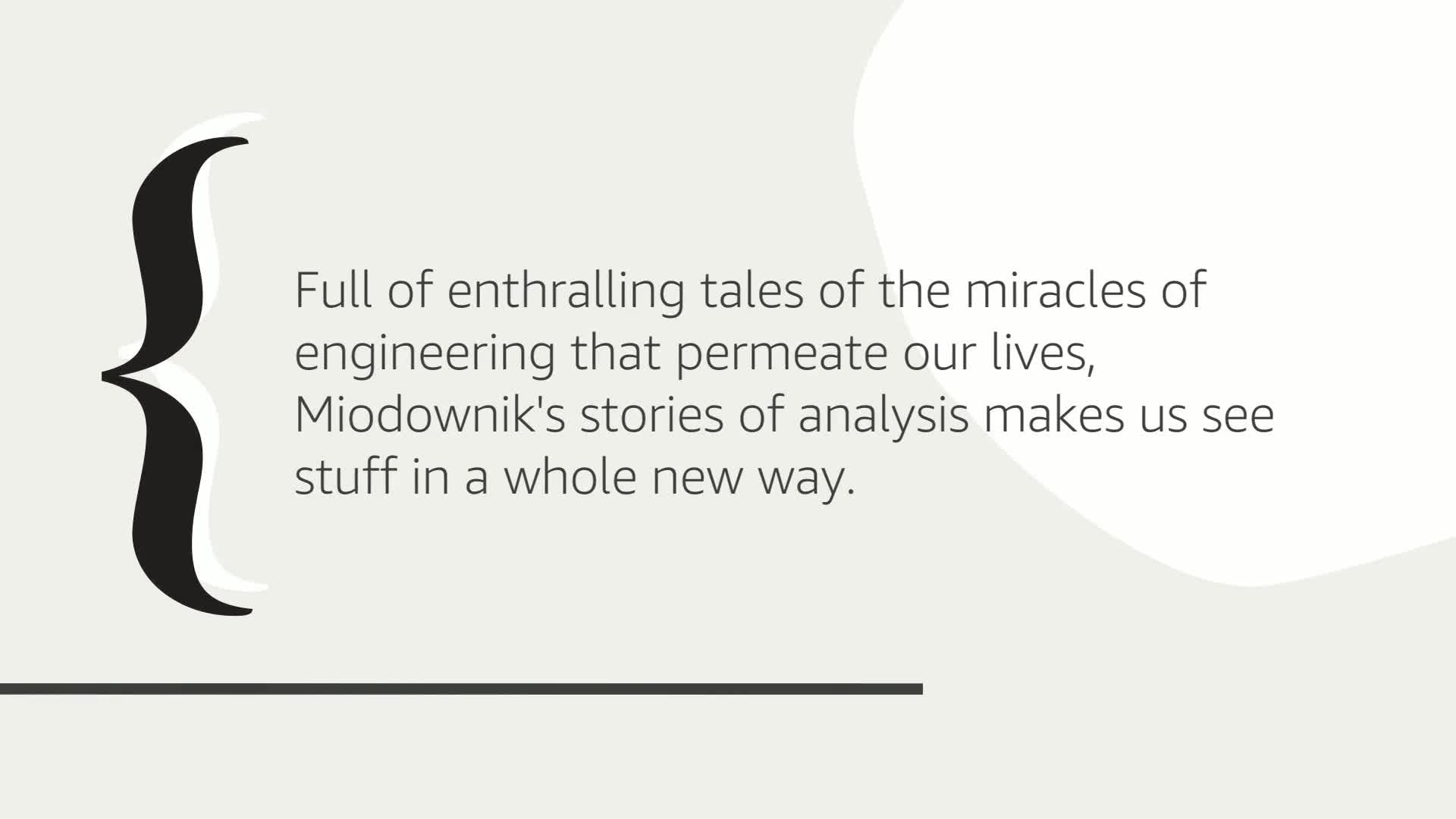 In Stuff Matters, Miodownik explores the materials he encounters in a typical morning, from the steel in his razor to the foam in his sneakers. Full of enthralling tales of the miracles of engineering that permeate our lives, his stories of analysis will make you see stuff in a whole new way.