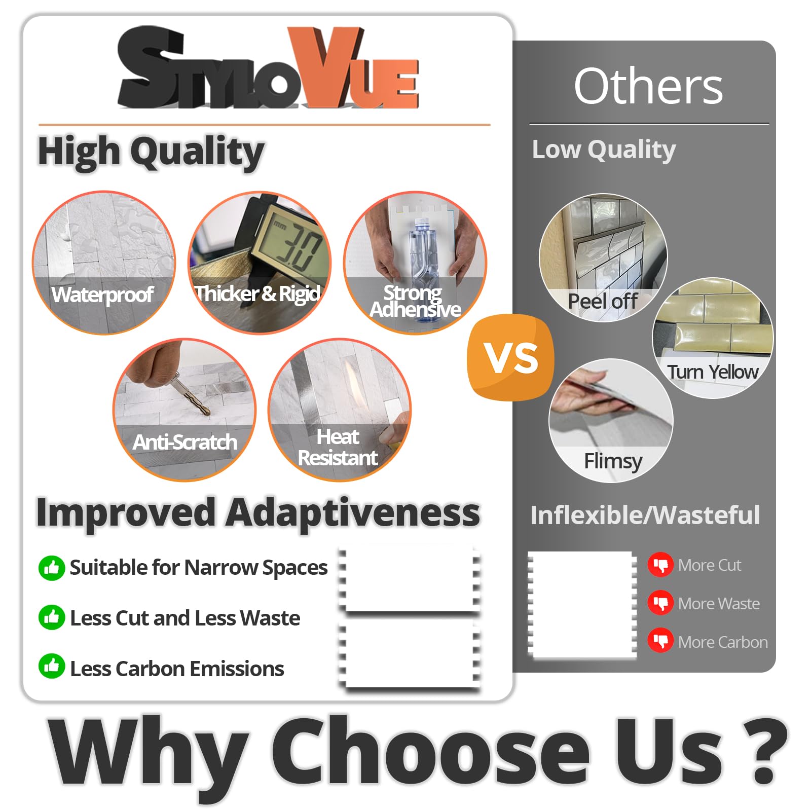 - ๐๐๐จโ๐ ๐ซ๐ข๐๐ง๐๐ฒ ๐๐จ๐ฉ๐ก๐ข๐ฌ๐ญ๐ข๐๐๐ญ๐ข๐จ๐ง: Transform your space with eco-friendly elegance! StyloVue self adhesive tile use non-toxic, greener materials to provide safe, sustainable and stylish options for your home.