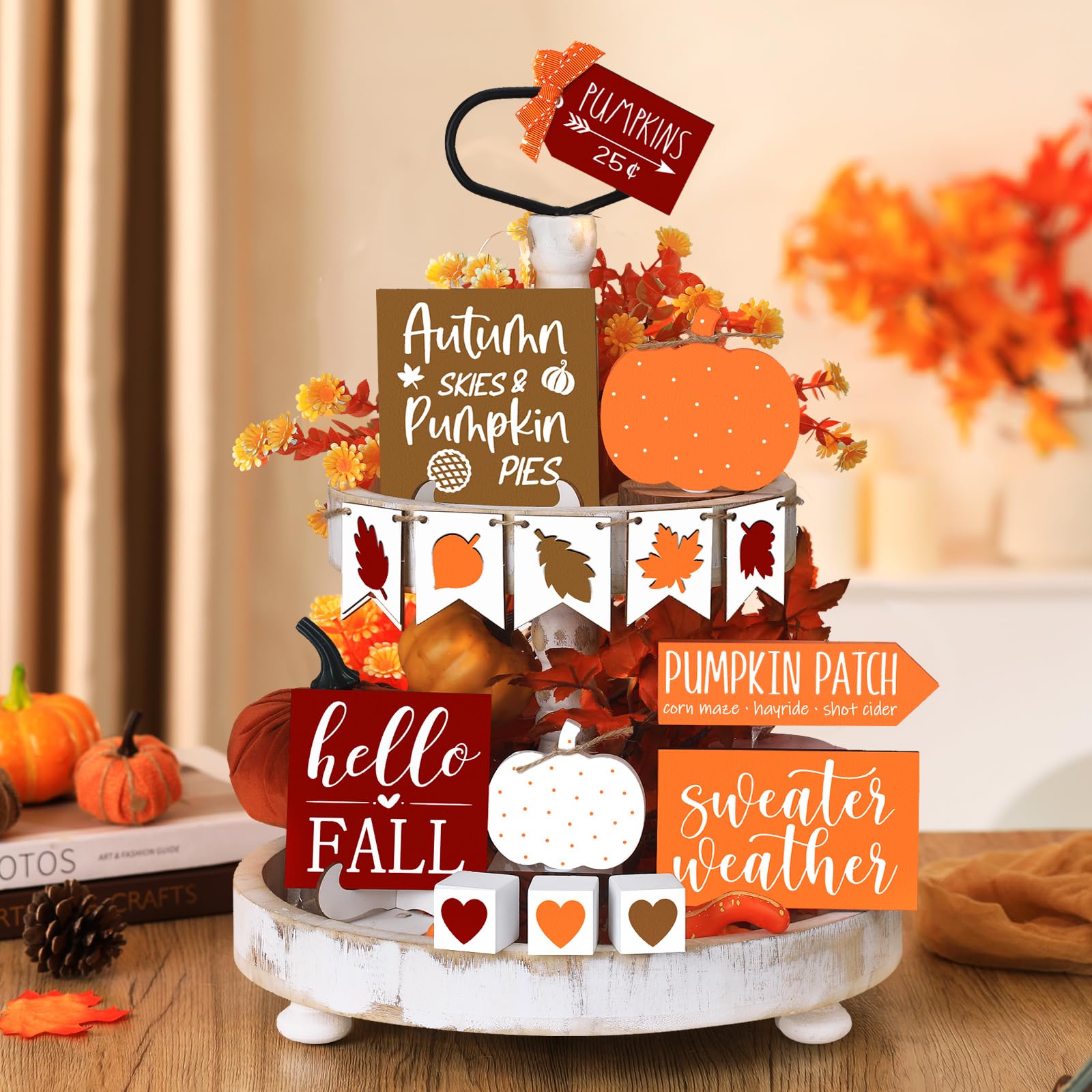 - Tiered Tray Decors Set: you will receive 15 pieces of fall tiered tray decors , sufficient and abundant, adorable and elegant, suitable for decorating your tiered trays in fall, Thanksgiving Day