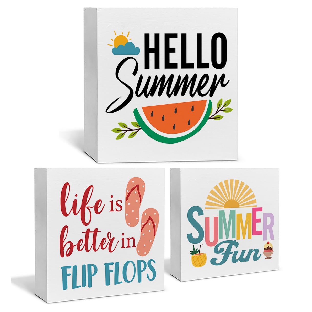 Summer Decor for Home Hello Summer Tiered Tray Decor 3 Pcs Wood Decorative Signs Table Desk Shelf Decoration