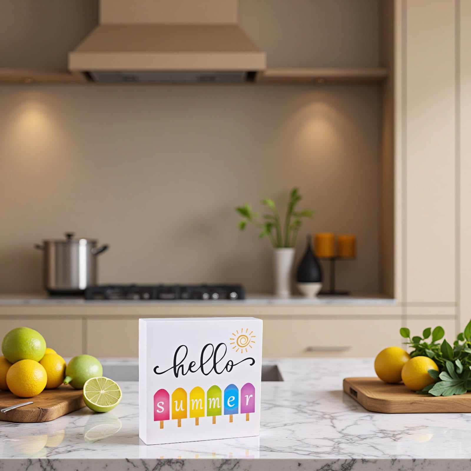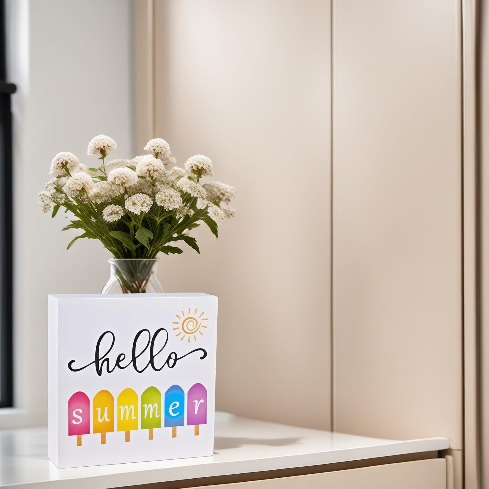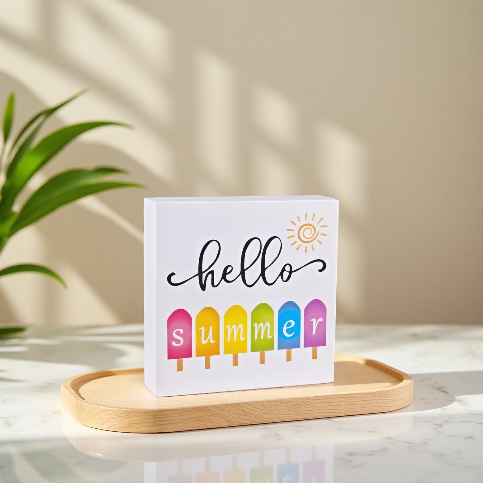 Summer Decor Summer Decorations for Home Popsicle Wood Box Sign Rustic Wooden Shelf Desk Decor Season House Warming Gifts 5.9 x 5.9 Inch