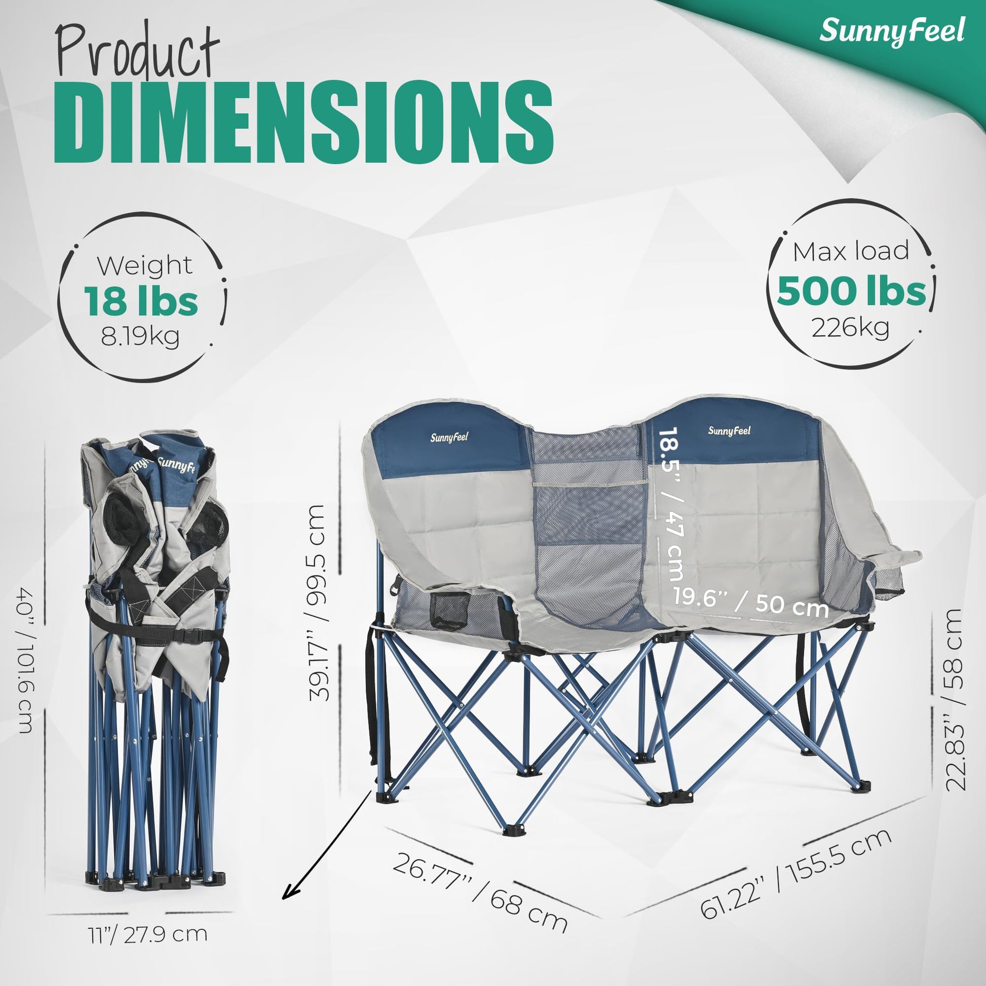 SUNNYFEEL Double Camping Chair, Portable Folding Loveseat with Cup Holders, Heavy Duty Steel Frame, Gray