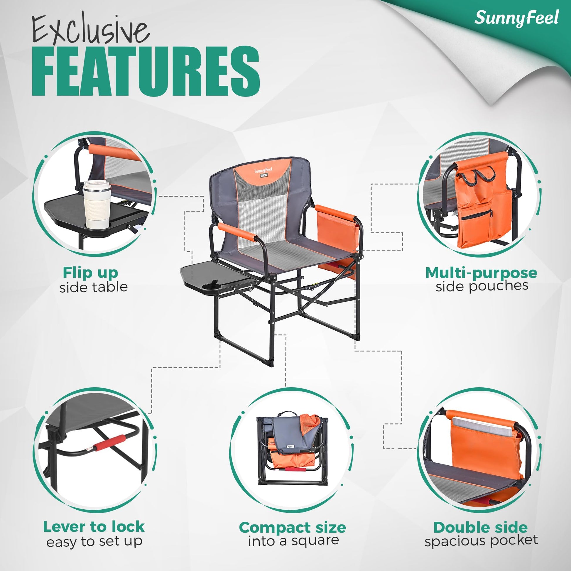 SUNNYFEEL Oversized Camping Directors Chair 2 Pack, Portable Folding Lawn Chairs for Adults Heavy Duty with Side Table,Pocket for Beach, Fishing,Picnic,Concert Outdoor, Foldable Camp Chairs