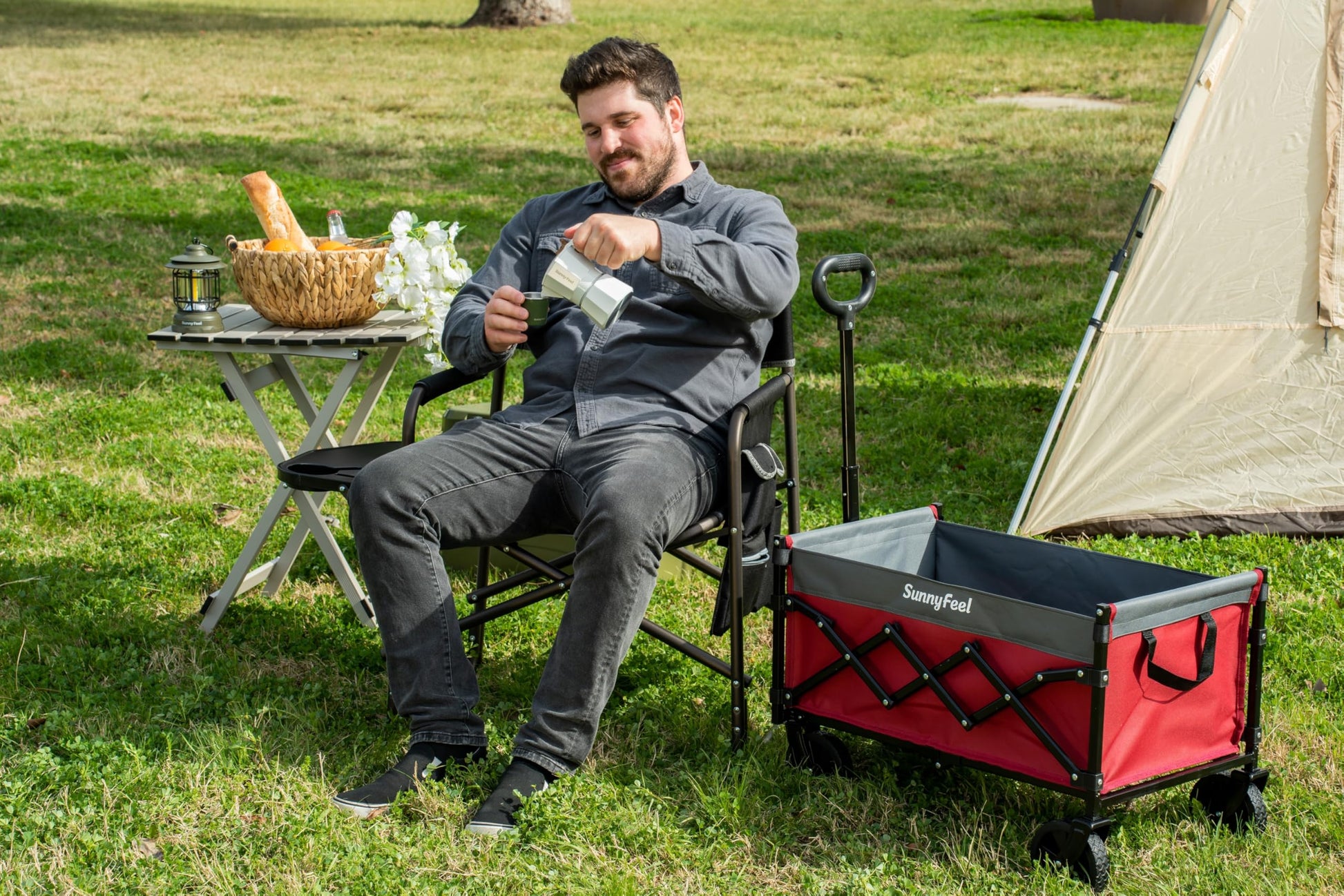 - A Camping Director Chair that is Built for Anywhere: Use it as a camping chair, folding chair, lawn chair, travel chair, beach chair and more. Suitable for outdoor adventures, tailgating, fishing, backpacking, beach, picnic, sport games, car travelling, or just put it in the backyard, cabin, balcony, patio lawn parties. The SunnyFeel camping chair is an essential to add to your camping accessories.