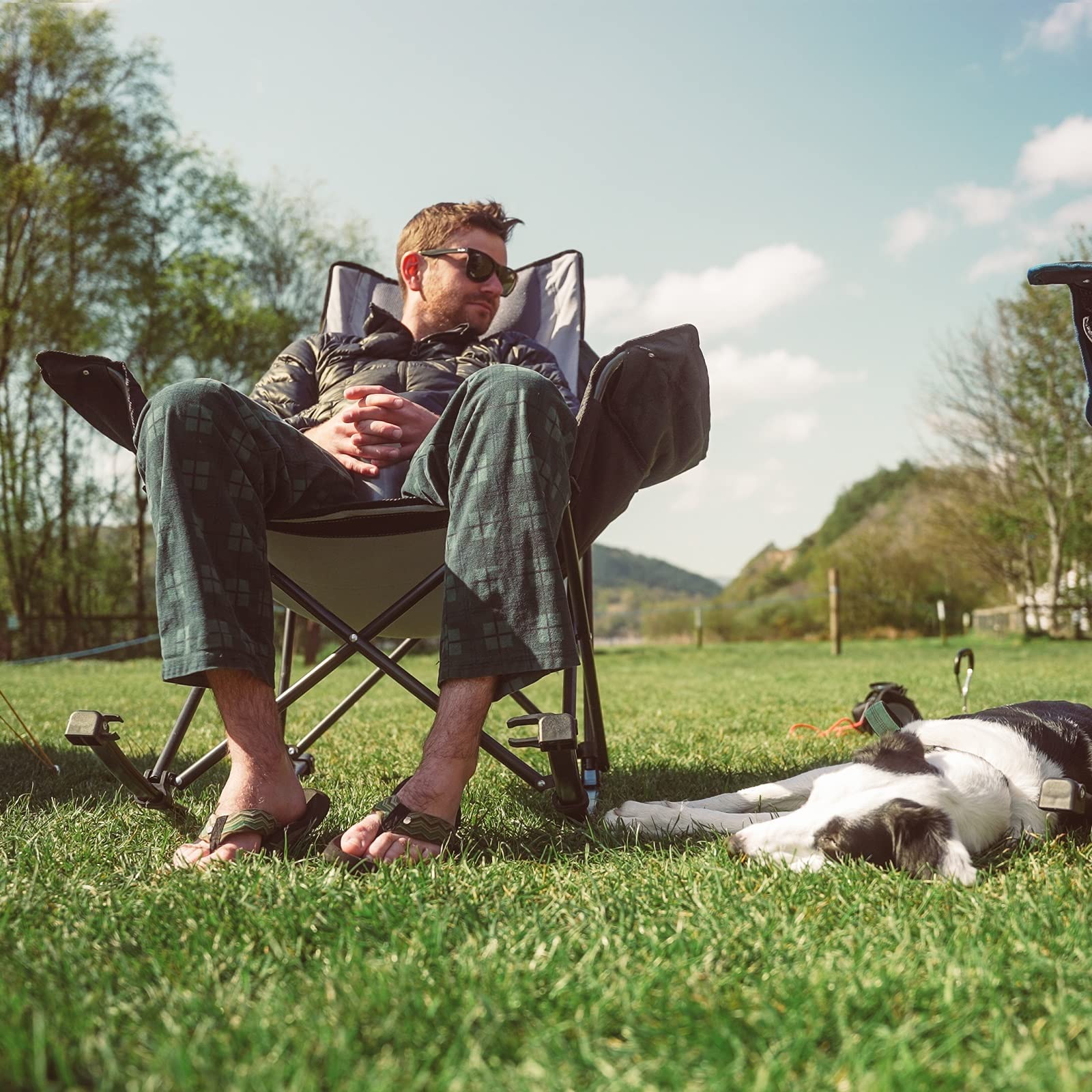 - Easy-Peasy: Setting this portable rocking camping chair up is effortless and fast. You only have to take it out from the shoulder straps attached carry bag and pull the frame apart, and … Ta-Da! Here you go - now you can enjoy this supreme comfy outdoor folding chairs and easily transport to camp, lawn, concerts and festivals.