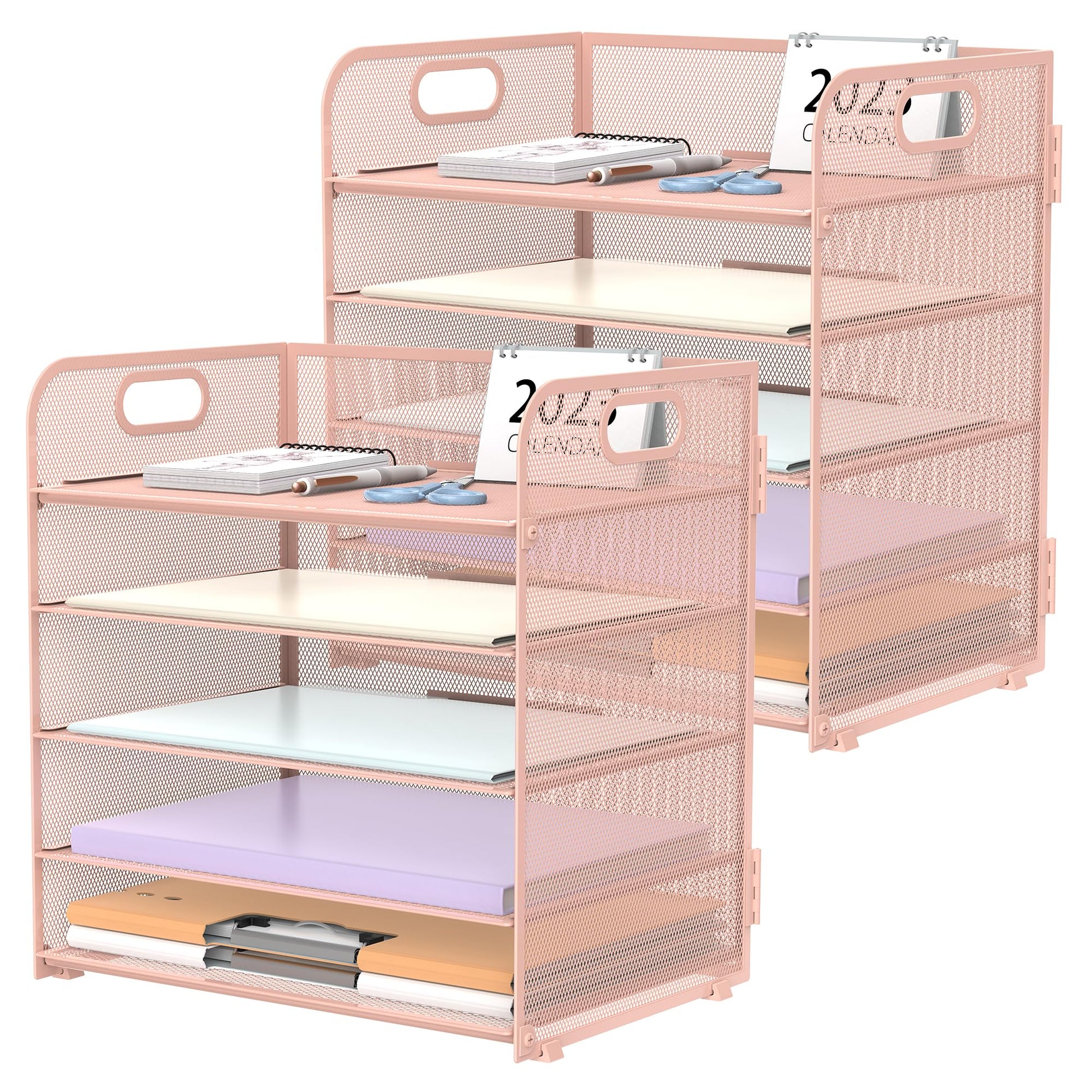 Supeasy 5 Trays Paper Organizer Letter Tray with Handle-Mesh Desk File Organizer, Paper Sorter Desk Organizer for Office, Home or School